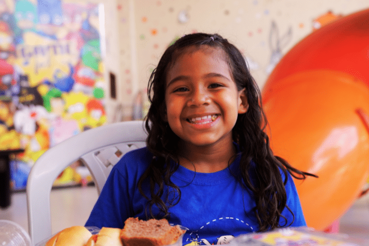 A empolgação era tanta que nem o chamado para comer parecia convencê-los a parar de brincar. Mas, nada que brigadeiro, pipoca, algodão-doce e salgadinho não resolvessem. Afinal, festa de criança só fica completa quando tem gostosuras. As guloseimas, doadas pela Panificadora Nossa Senhora de Fátima, reuniram os pequenos em um momento que foi além do ato de nutrir, mas também uma ocasião para agradecer pela vida e celebrar a data em comunhão com os amigos.