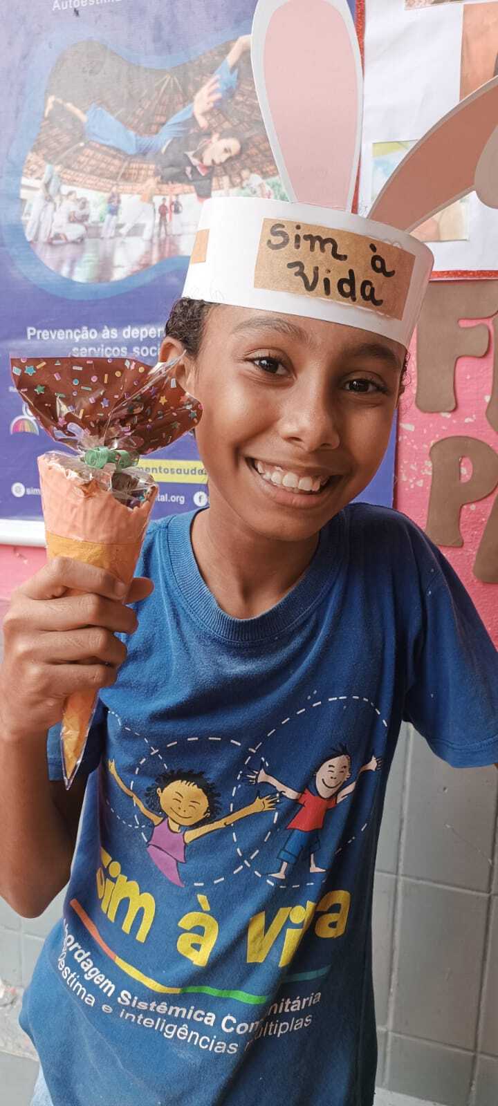 A ressurreição de Cristo, simbolizada pela Páscoa, nos convida a renovar as nossas esperanças e refletir sobre o amor, o perdão e a união. Para celebrar a data, os colaboradores do projeto Sim à Vida, em Fortaleza, organizaram uma rifa solidária para arrecadar insumos para a produção de cones trufados, que foram distribuídos às crianças participantes do projeto nos núcleos Marrocos e Pé no Chão, na periferia de Fortaleza.