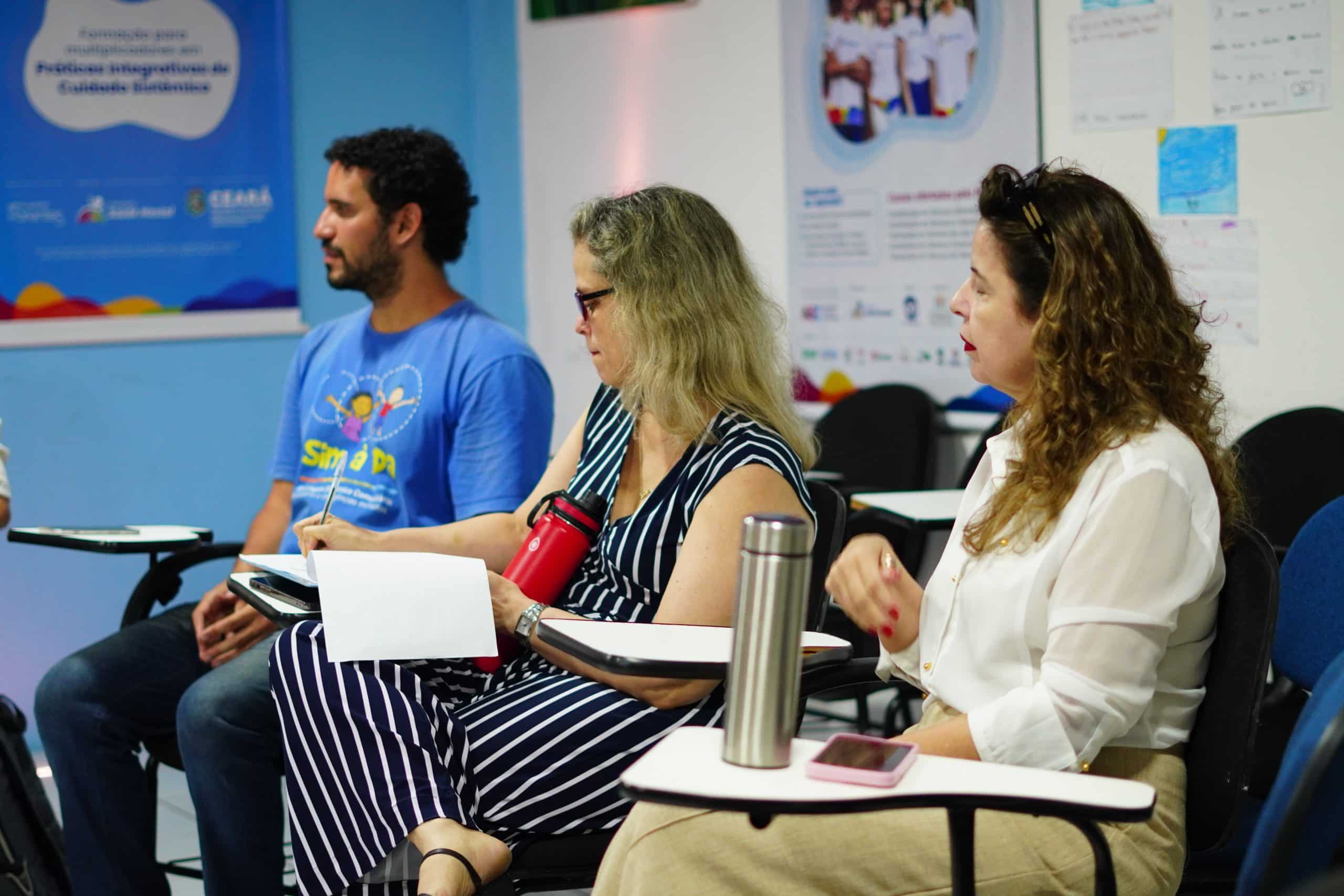 Na tarde do dia 19/07/2024, a pró-reitora de Extensão da Universidade Federal do Ceará (UFC), professora Bernadete Porto e professores, realizaram um diálogo com o Movimento Saúde Mental (MSM) tratando de temas que podem ampliar as ações de extensão no Grande Bom Jardim. Há uma preocupação com o índice de analfabetismo dos beneficiários do Ceará Sem Fome atendidos pelo MSM e com a atenção às crianças cujas mães estejam se profissionalizando na Escola de Gastronomia Autossustentável do MSM, bem como com pessoas surdas, entre outras questões envolvendo moradores da região.