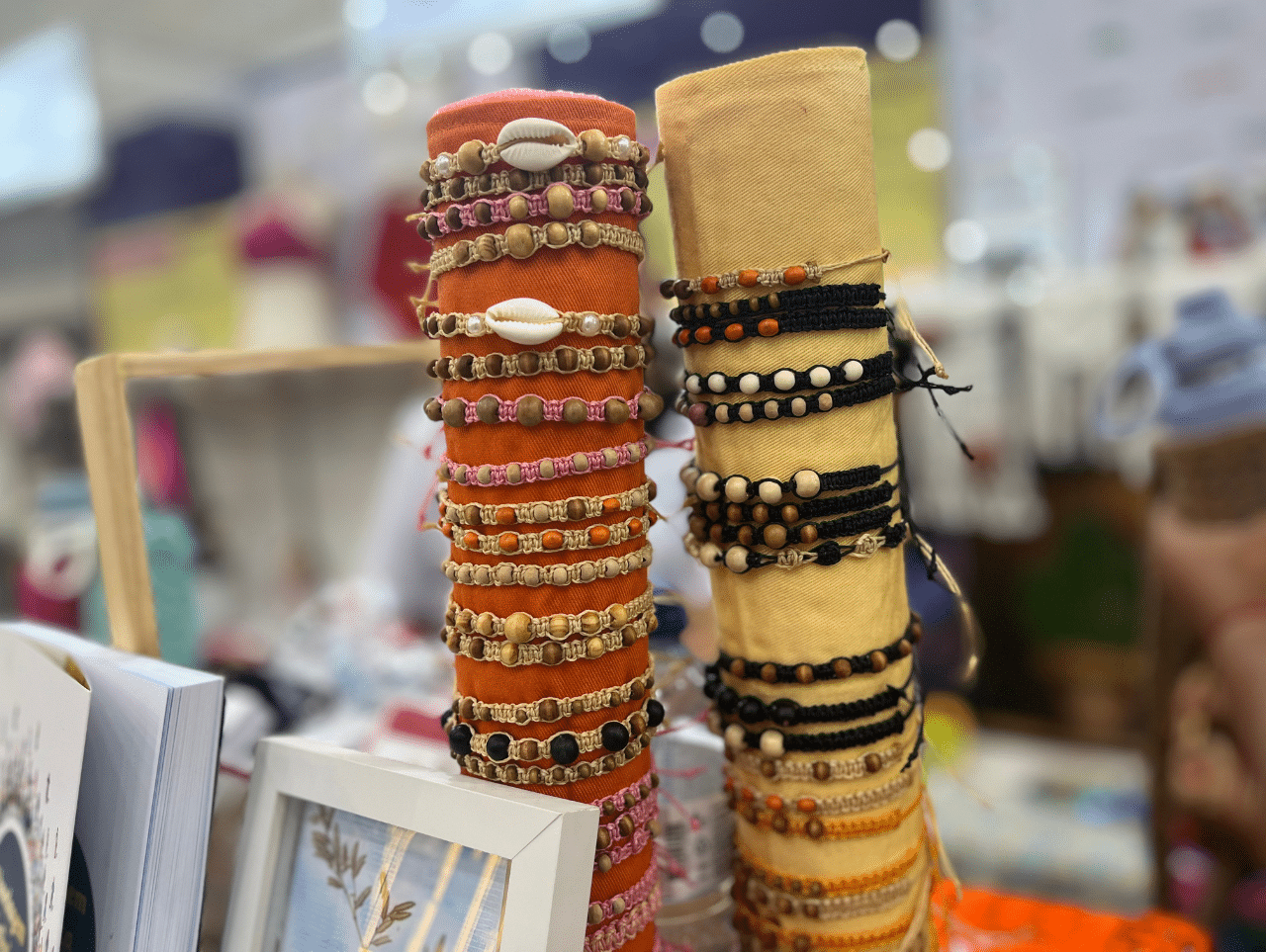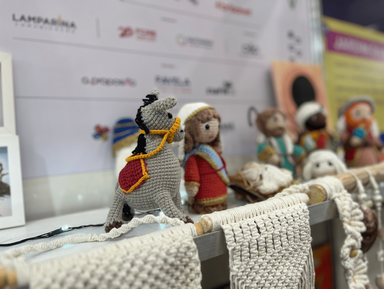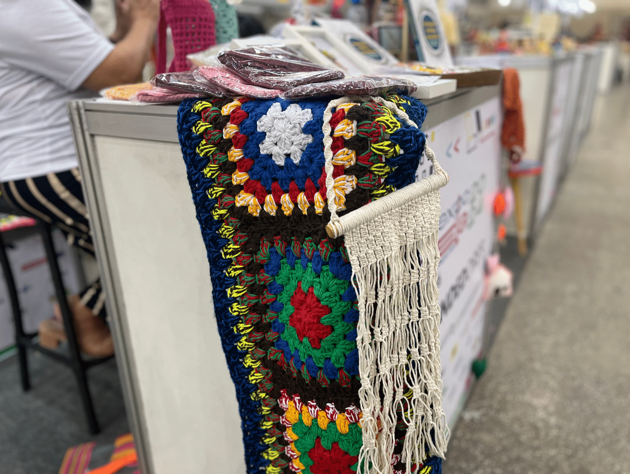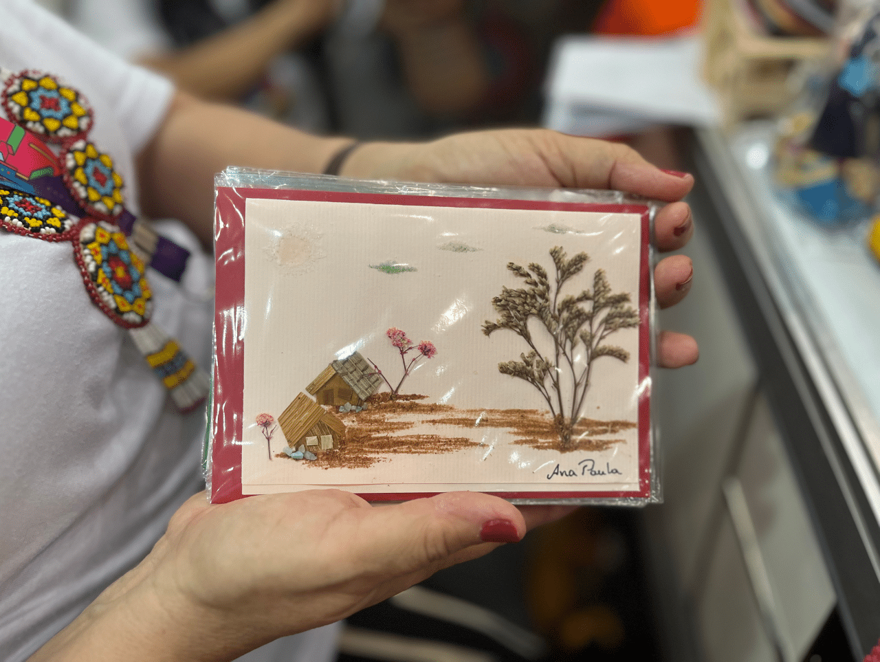 Com um estande que refletiu a criatividade e a força transformadora das mulheres do Grande Bom Jardim, a Casa AME exibiu produtos como quadros, crochê, macramê, cartões orgânicos, pulseiras artesanais e amigurumis, produzidos por mulheres acolhidas pelo projeto. Entre os destaques, estão os Cartões Orgânicos, feitos com materiais orgânicos que já faleceram, como penas de aves, folhas secas e palhas de bananeira.