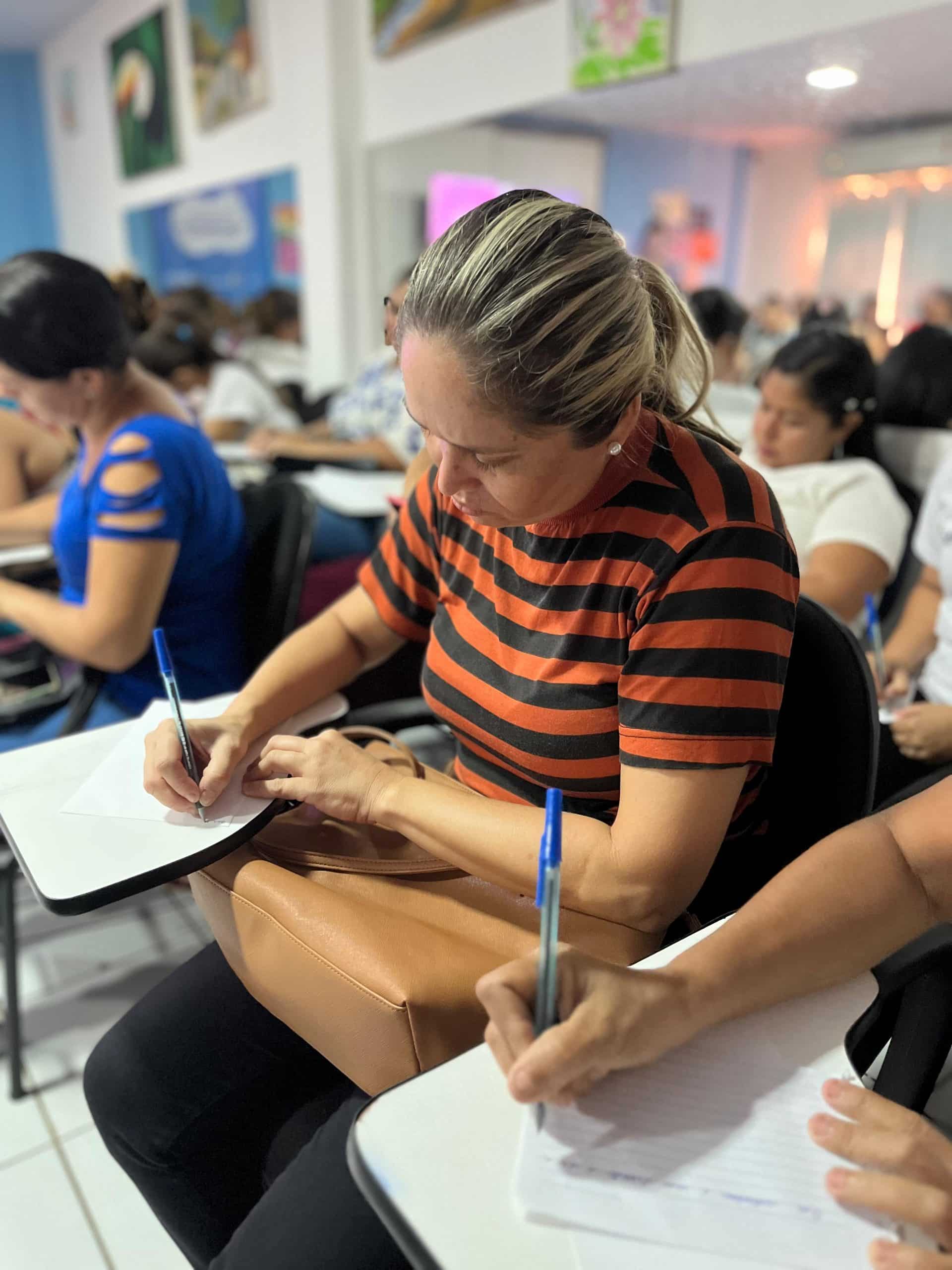 No dia 20, segunda-feira, as alunas foram recebidas para a primeira aula do módulo de cidadania, com a temática “Direito das Mulheres”. Realizado por Vilenilza Matos, do Conselho Cearense dos Direitos da Mulher, e pela professora Monaliza Rocha, da turma de Pâtisserie e Confeitaria Contemporânea, o encontro promoveu uma discussão sobre o pensamento crítico na sociedade, focando na cidadania da mulher.