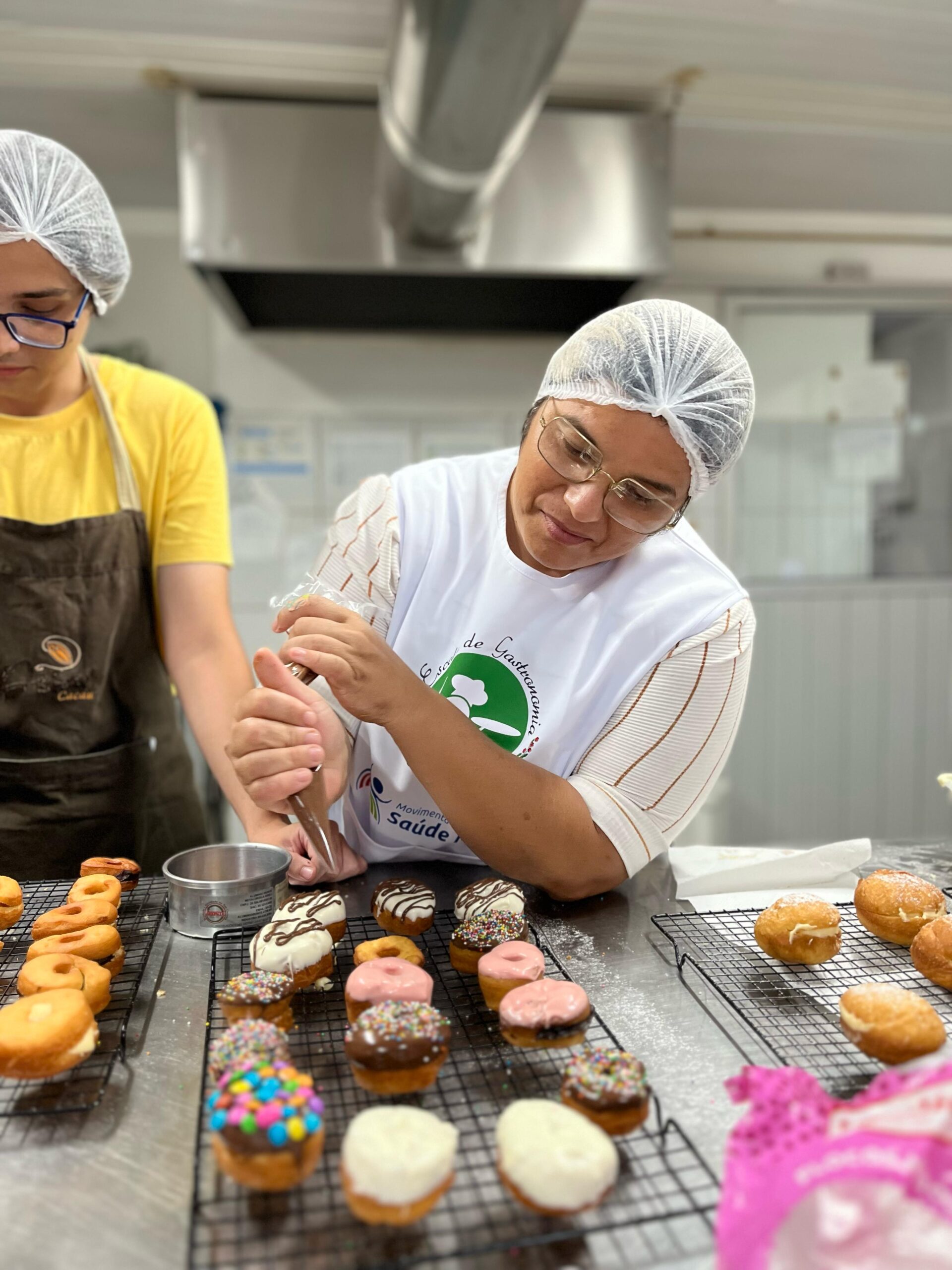 Realizadas na cozinha da Escola de Gastronomia Autossustentável (EGA), as aulas contaram com o preparo de massas fermentadas como sonho, donuts, massas folhadas e semi-folhadas, torta de chocolate e bolo de chocolate com morango sem glúten e sem lactose, além de sobremesas como pavê e delícia de abacaxi. Os professores de cada turma também instruem sobre precificação e formas de embalagem e armazenamento.