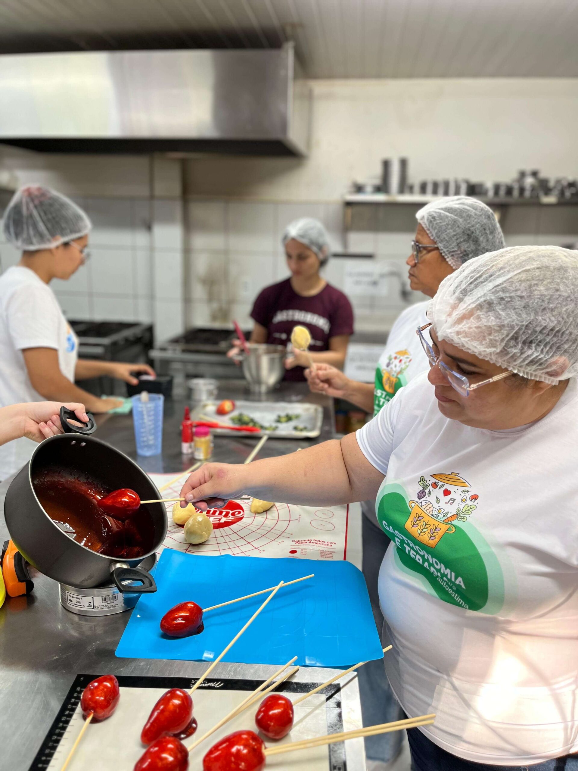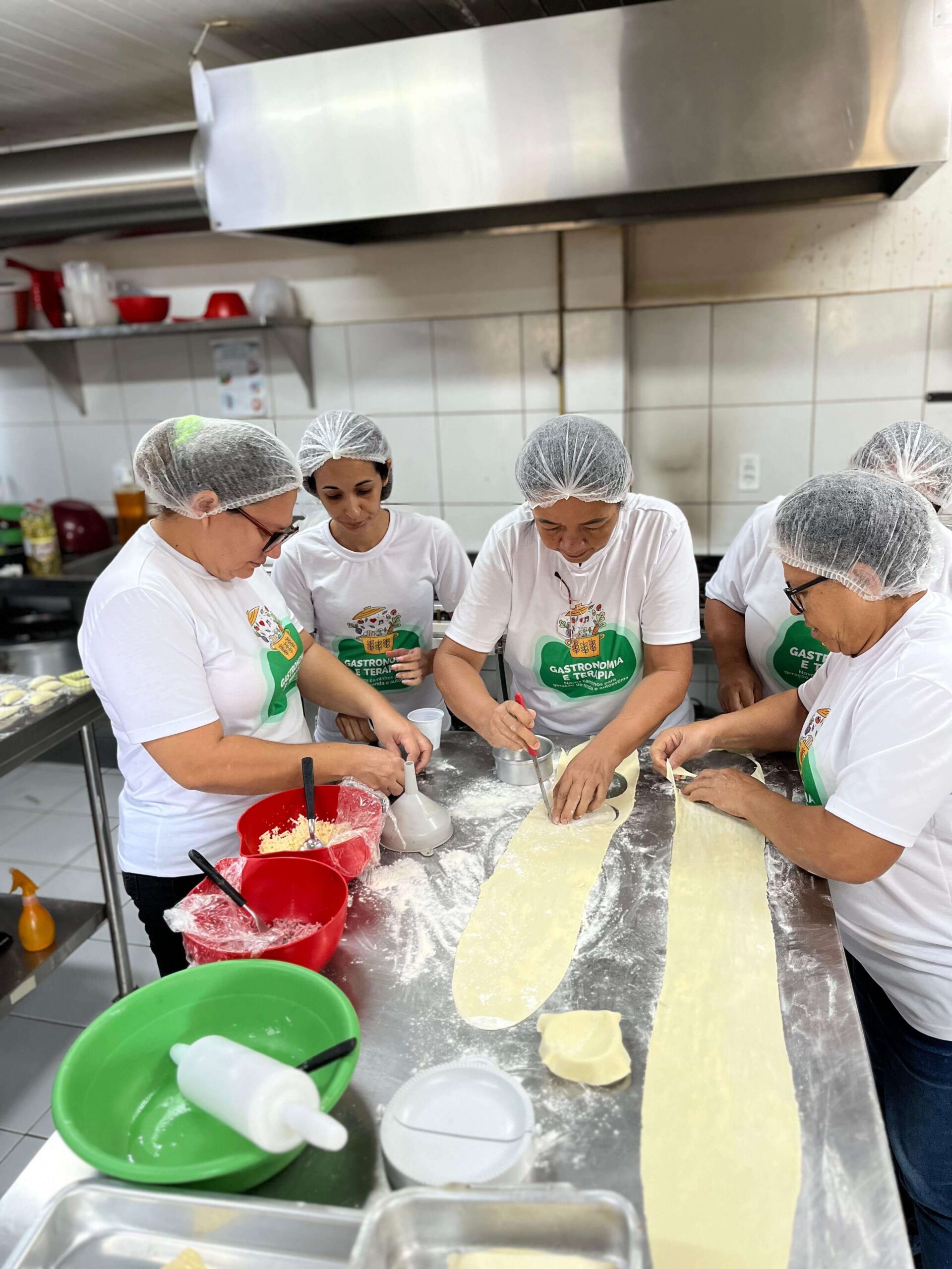 Na mesma semana, a turma de Salgados Comerciais aprendeu com o professor Joel Andrade sobre pastéis artesanais, e a turma de Confeitaria, da professora Monaliza Costa, produziu bolo de cenoura e bolo mole na aula de massas líquidas.