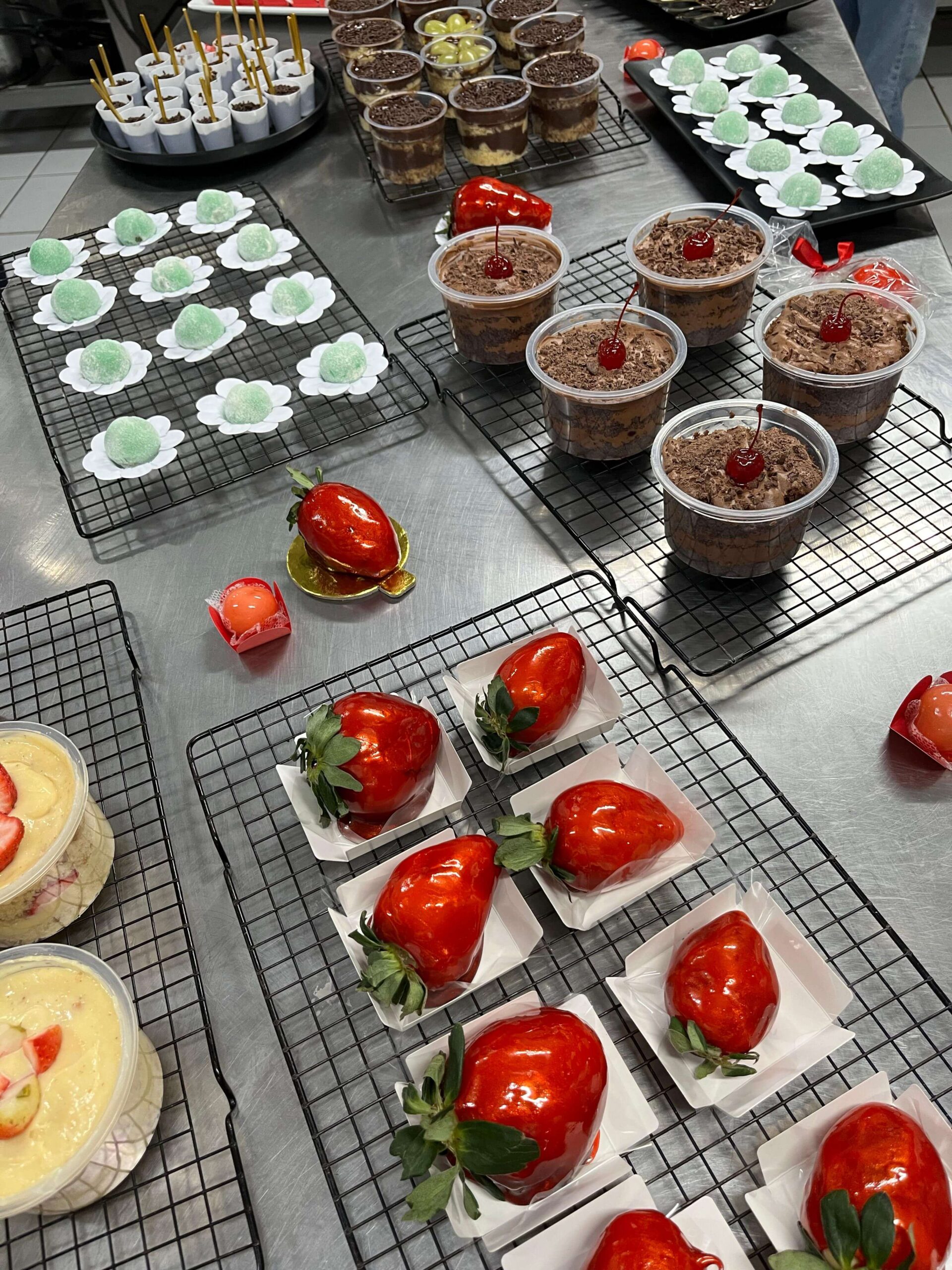 As turmas comandadas pelos professores Yan Alves e Lauana Fontenele ainda prepararam outras receitas com frutas, chocolates finos, bolo de pote e brigadeiro de colher, explorando a criatividade nas decorações dos produtos.
