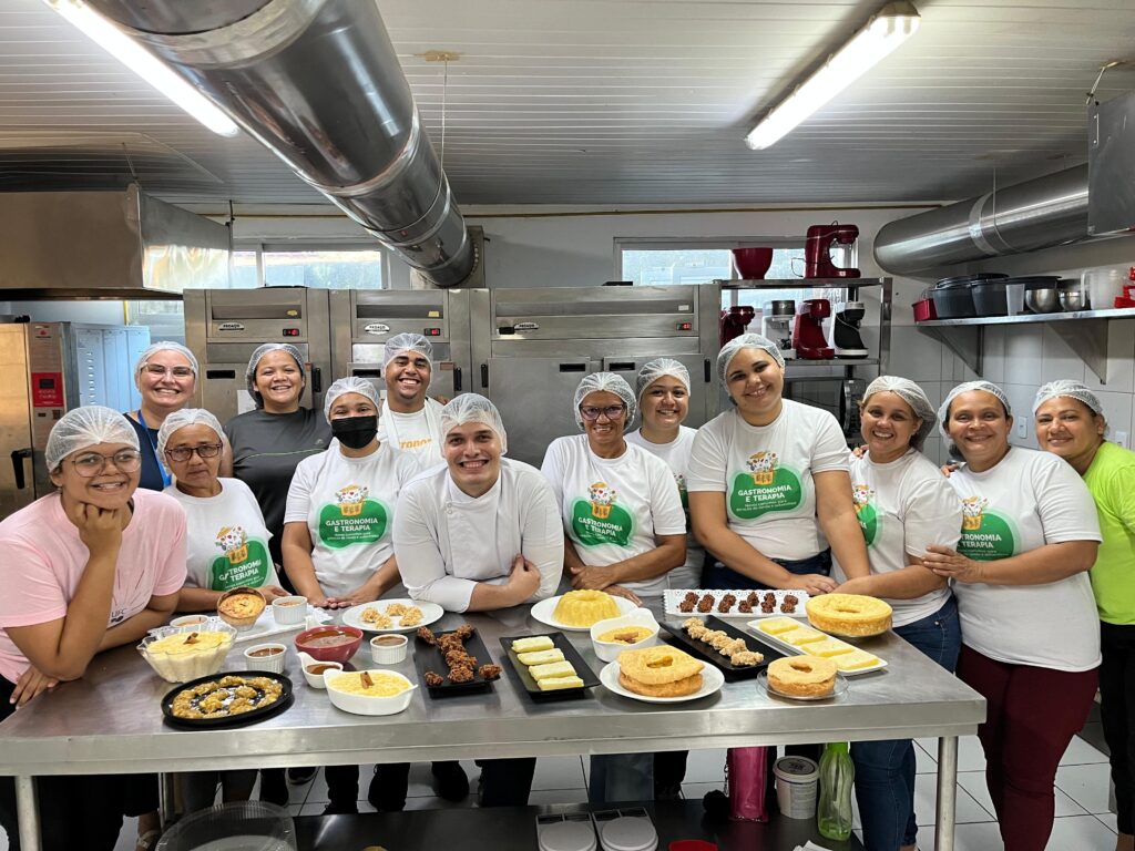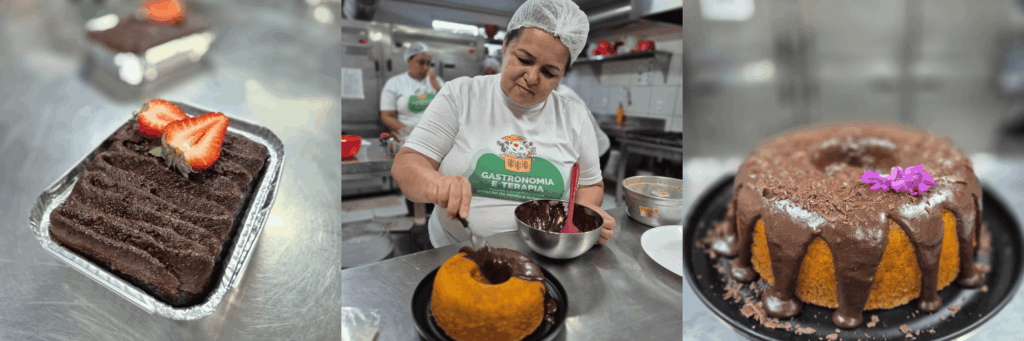 A aula do curso de Confeitaria da semana focou em receitas inclusivas. No dia 30/10 a professora Monaliza Costa comandou o preparo de receitas sem glúten e sem lactose, onde a turma pôde entender mais sobre a importância dessas receitas, além de reações adversas aos alimentos. Foram reproduzidos bolo de cenoura, bolo de chocolate e brownies.