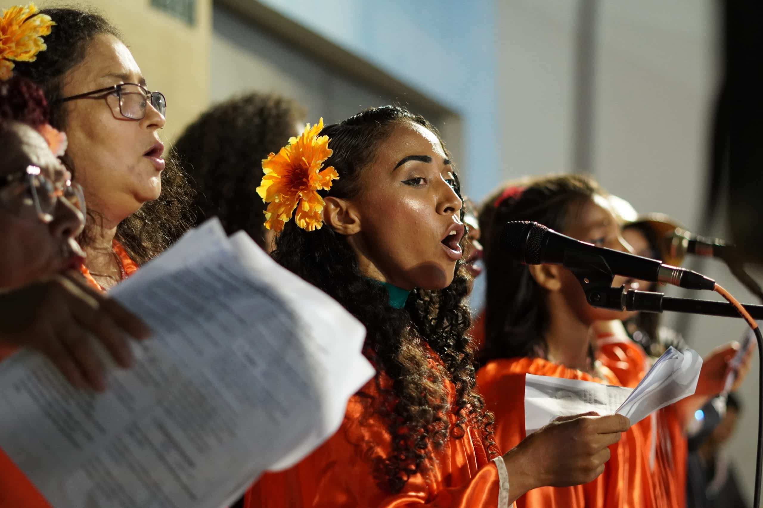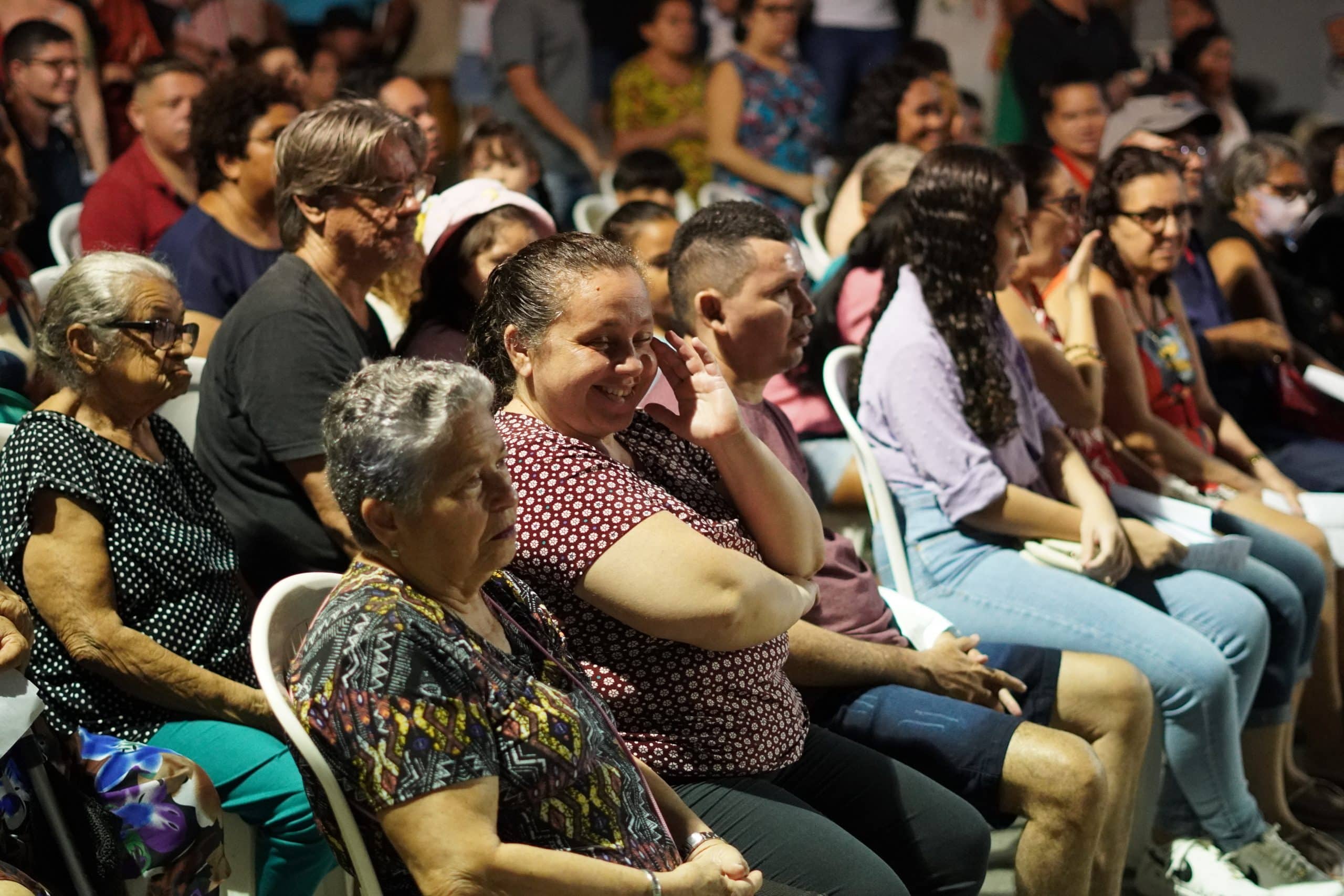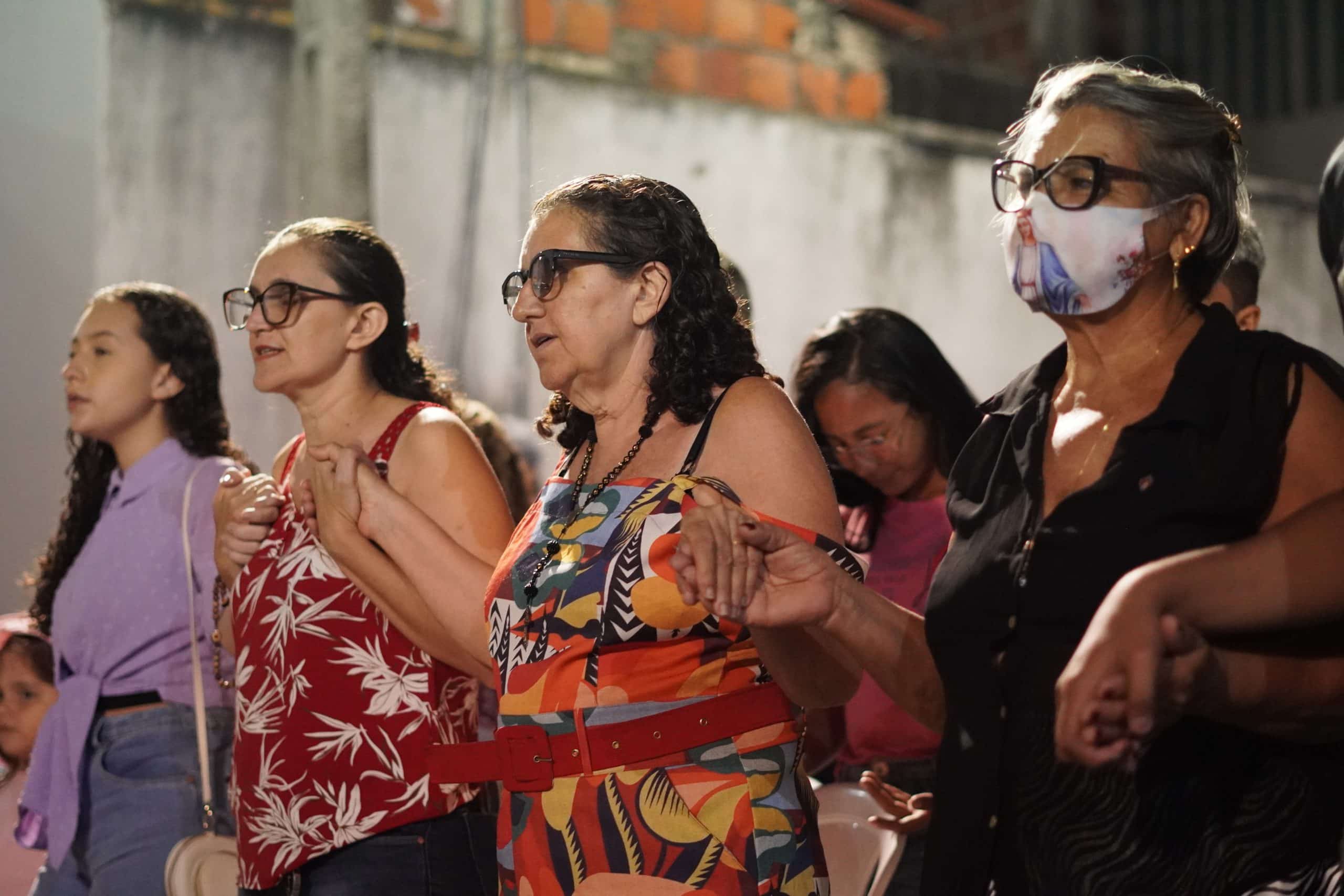 A Casa AME (Arte, Música e Espetáculo) mobilizou e coordenou um evento que ocupou uma porção da rua Dr. Fernando Augusto, no dia 22 de dezembro, no bairro Bom Jardim, em Fortaleza. O ato reuniu uma celebração ecumênica, conduzida por Padre Rino, nela foi inserido um auto de natal. Aquele foi um momento para refletir sobre a realidade atual e como o menino-Deus está presente em cada família. Ao final, foi também uma oportunidade para abraços solidários, confraternização e agradecimento pelas conquistas do ano de 2023.