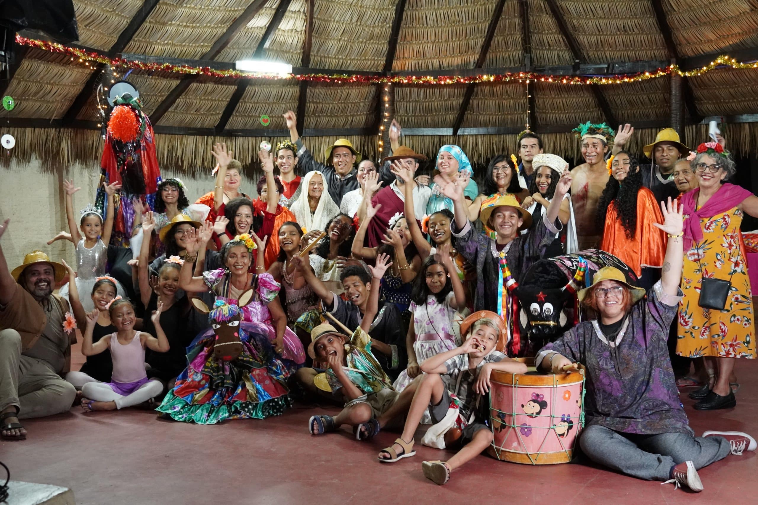(Elenco do Auto de Natal se reúne na Palhoça para comemorar a apresentação / Foto: Yago Medina)