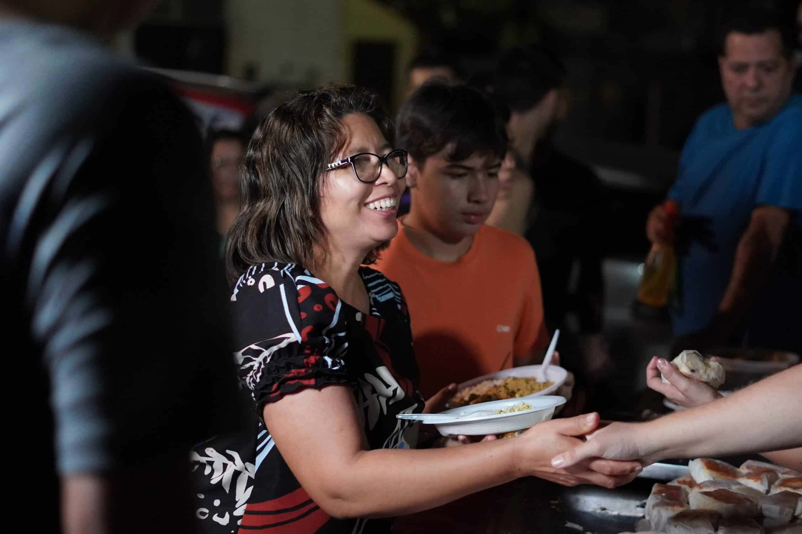 Após a celebração presidida por padre Rino, cada participante e quem mais chegou à rua, recebeu uma ceia natalina, preparada pela equipe da EGA do Gastronomia Social. Durante a noite, os moradores se organizaram em fila para receber as refeições.