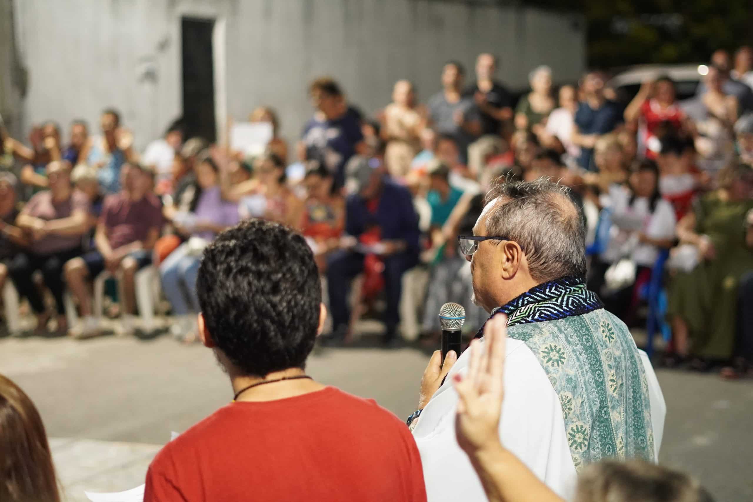 A Casa AME (Arte, Música e Espetáculo) mobilizou e coordenou um evento que ocupou uma porção da rua Dr. Fernando Augusto, no dia 22 de dezembro, no bairro Bom Jardim, em Fortaleza. O ato reuniu uma celebração ecumênica, conduzida por Padre Rino, nela foi inserido um auto de natal. Aquele foi um momento para refletir sobre a realidade atual e como o menino-Deus está presente em cada família. Ao final, foi também uma oportunidade para abraços solidários, confraternização e agradecimento pelas conquistas do ano de 2023.