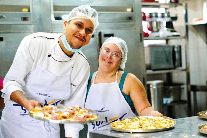 Entre os dias 19 e 23 de fevereiro, o programa de capacitação gastronômica Alimentando Sonhos, realizado pelo Movimento Saúde Mental (MSM), com o financiamento da M.Dias Branco, recebeu um chamado mais que especial. Participantes da Associação Fortaleza Down compartilharam experiências e tiveram a oportunidade de desenvolver suas habilidades na área de gastronomia durante o curso de Salgados Comerciais. O curso aconteceu na Escola de Gastronomia Autossustentável (EGA), no Bom Jardim.