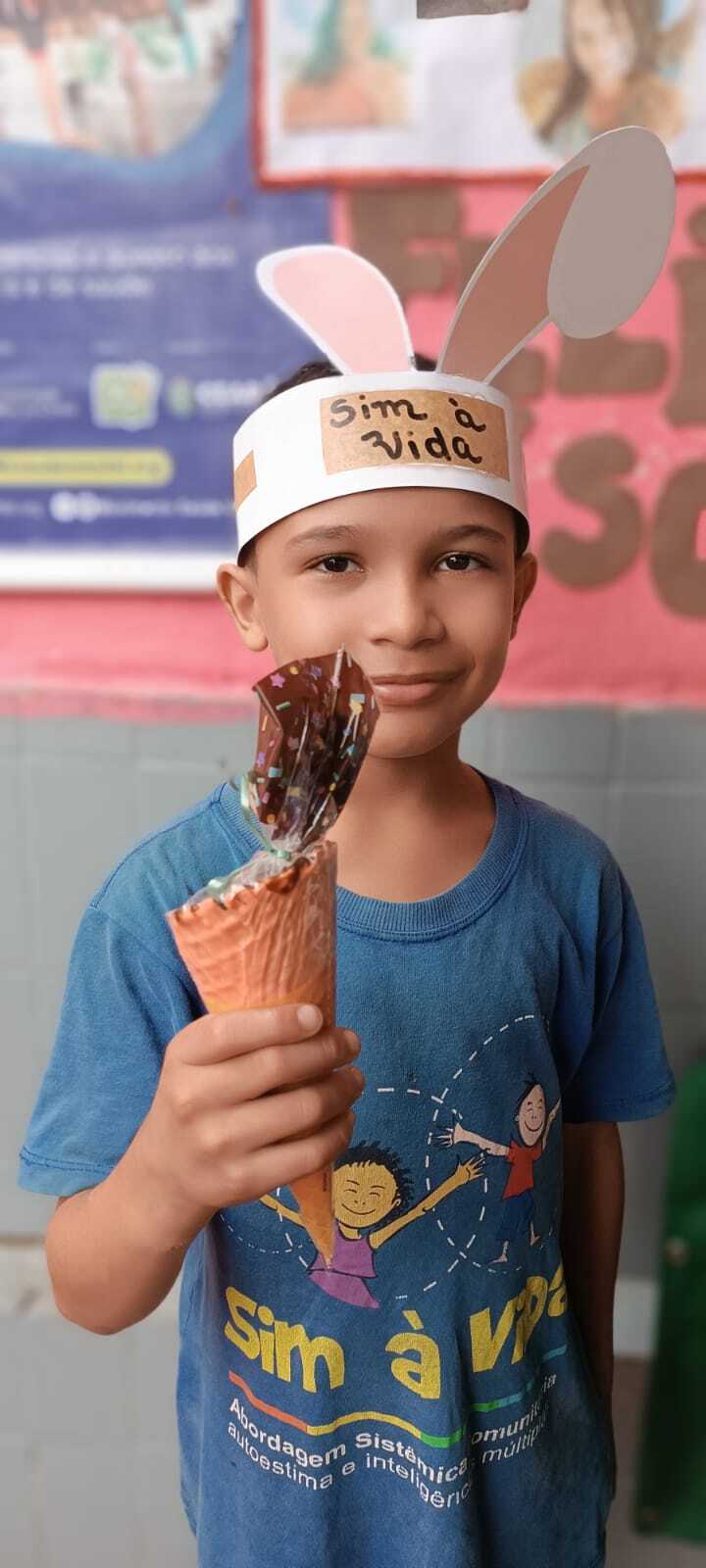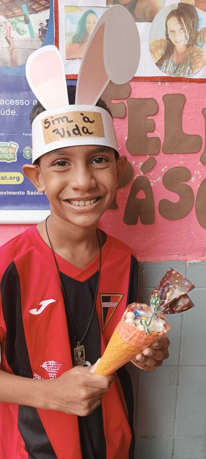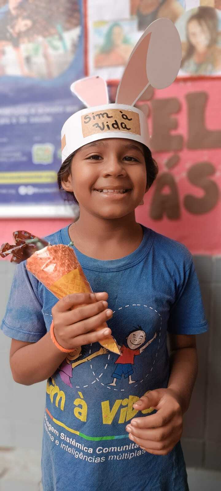 A ressurreição de Cristo, simbolizada pela Páscoa, nos convida a renovar as nossas esperanças e refletir sobre o amor, o perdão e a união. Para celebrar a data, os colaboradores do projeto Sim à Vida, em Fortaleza, organizaram uma rifa solidária para arrecadar insumos para a produção de cones trufados, que foram distribuídos às crianças participantes do projeto nos núcleos Marrocos e Pé no Chão, na periferia de Fortaleza.
