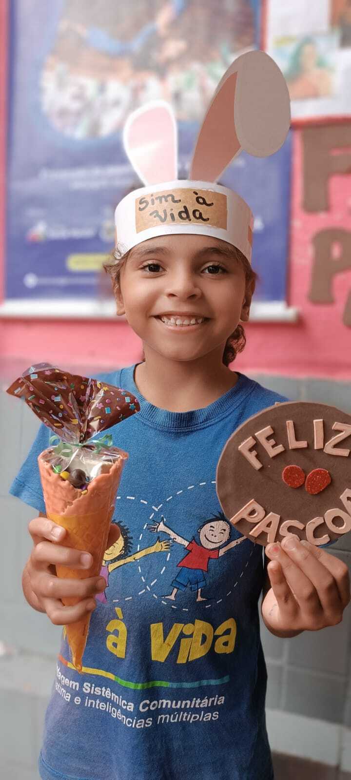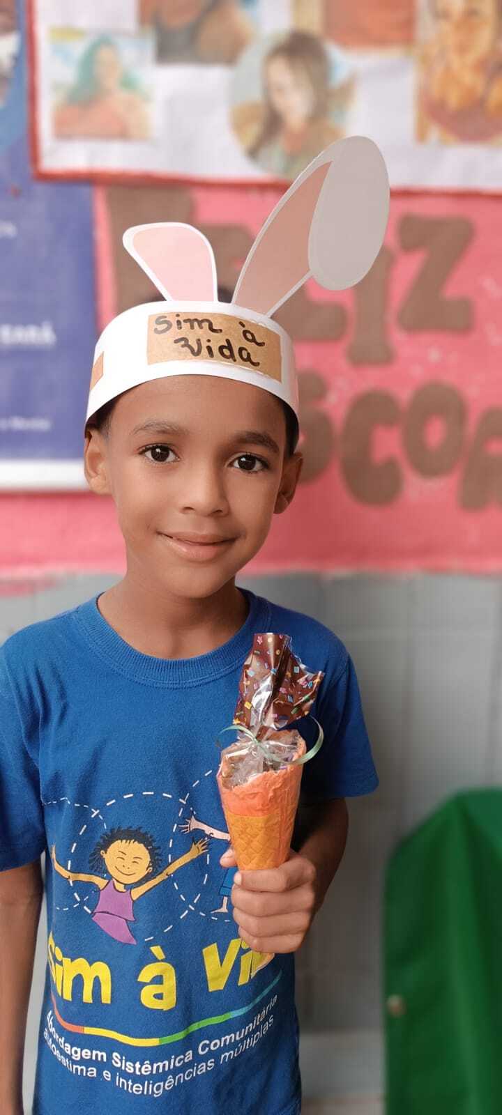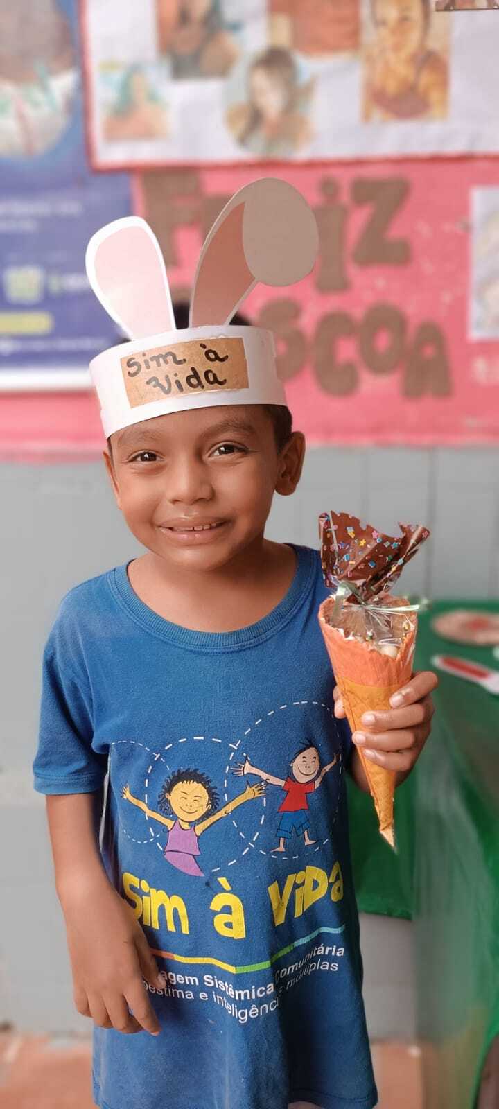 A ressurreição de Cristo, simbolizada pela Páscoa, nos convida a renovar as nossas esperanças e refletir sobre o amor, o perdão e a união. Para celebrar a data, os colaboradores do projeto Sim à Vida, em Fortaleza, organizaram uma rifa solidária para arrecadar insumos para a produção de cones trufados, que foram distribuídos às crianças participantes do projeto nos núcleos Marrocos e Pé no Chão, na periferia de Fortaleza.