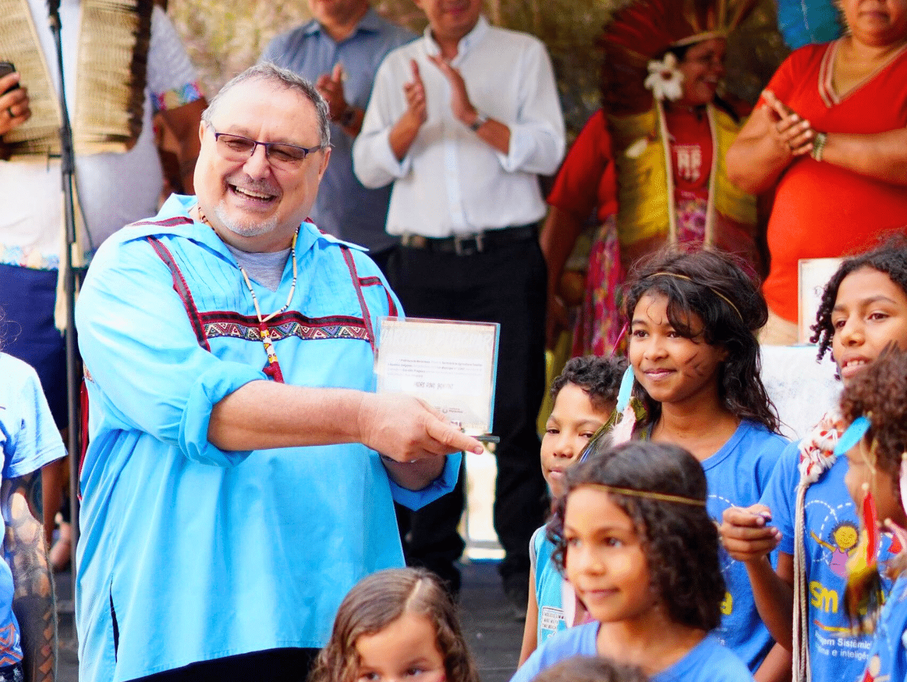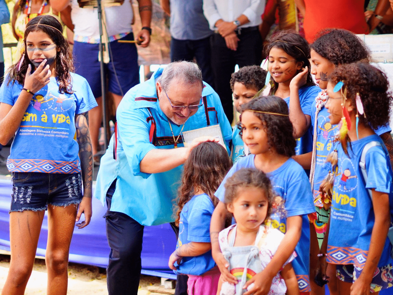 (Desde 2007, padre Rino Bonvini realiza ações e projetos para o fortalecimento da ancestralidade Pitaguary entre as novas gerações / Foto: Yago Medina)