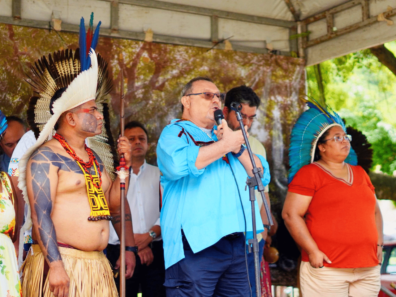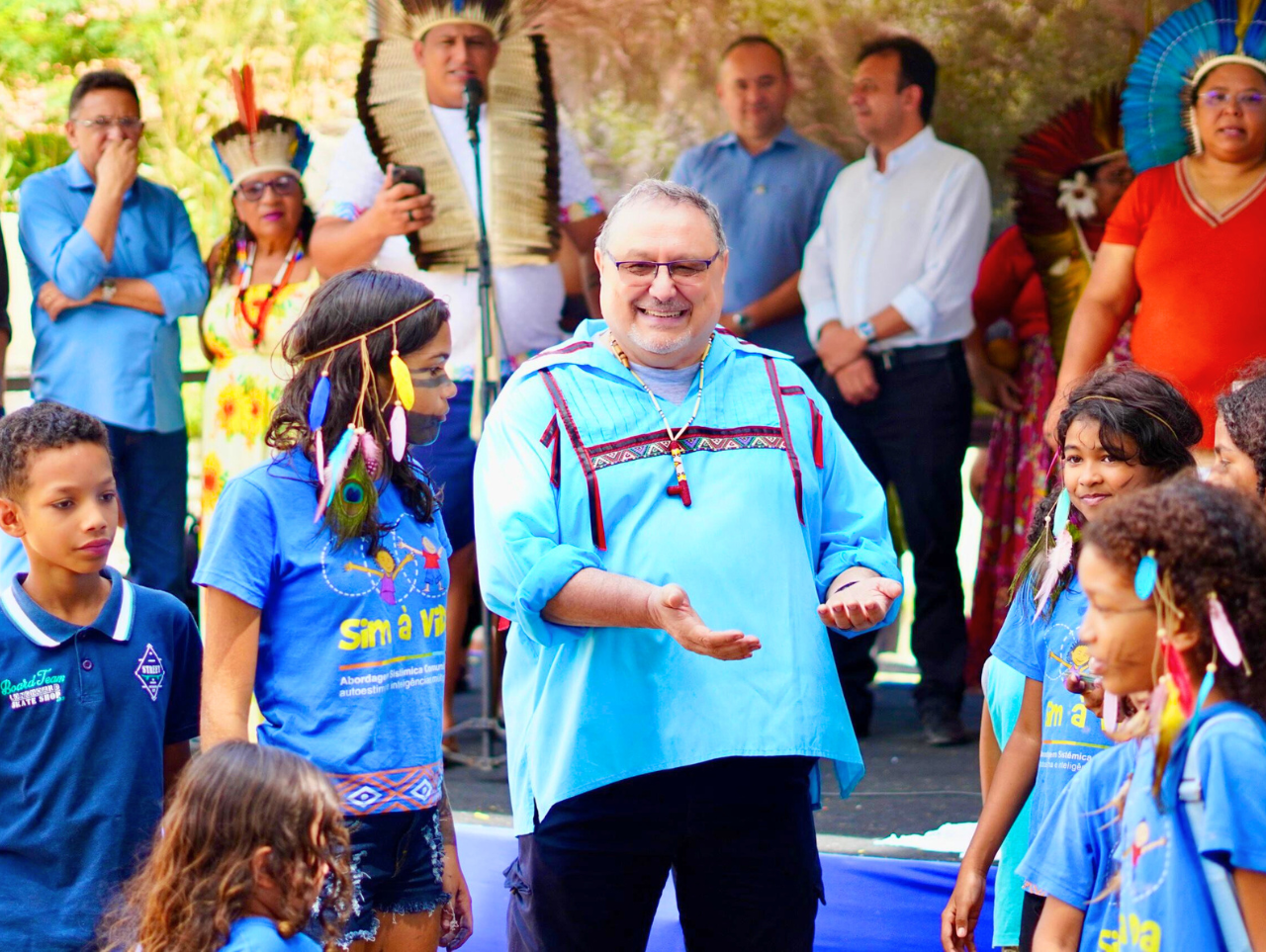 O evento, que reuniu representantes políticos, sociedade civil e lideranças indígenas, contou ainda com a realização do ritual ancestral, aos pés da Mangueira Sagrada. A música ficou por conta dos adolescentes da nova geração indígena, que aprenderam, em sua maioria, os cânticos em Tupi, graças às ações desenvolvidas pelo projeto Sim à Vida, do MSM. Entre os representantes que compareceram à solenidade, destaca-se a presença do Vice-Prefeito de Maracanaú, Neton Lacerda; do Deputado Estadual, Firmo Camurça; além de secretários e representantes do Governo do Estado do Ceará, do Distrito Sanitário Especial Indígena do Ceará (DSEI-CE), da Fundação Nacional dos Povos Indígenas (Funai), do IDACE, de caciques e pajés, das lideranças das comunidades do Horto, do Santo Antônio, do Olho D’água, da Munguba e, sobretudo, pela presença marcante do povo Pitaguary.