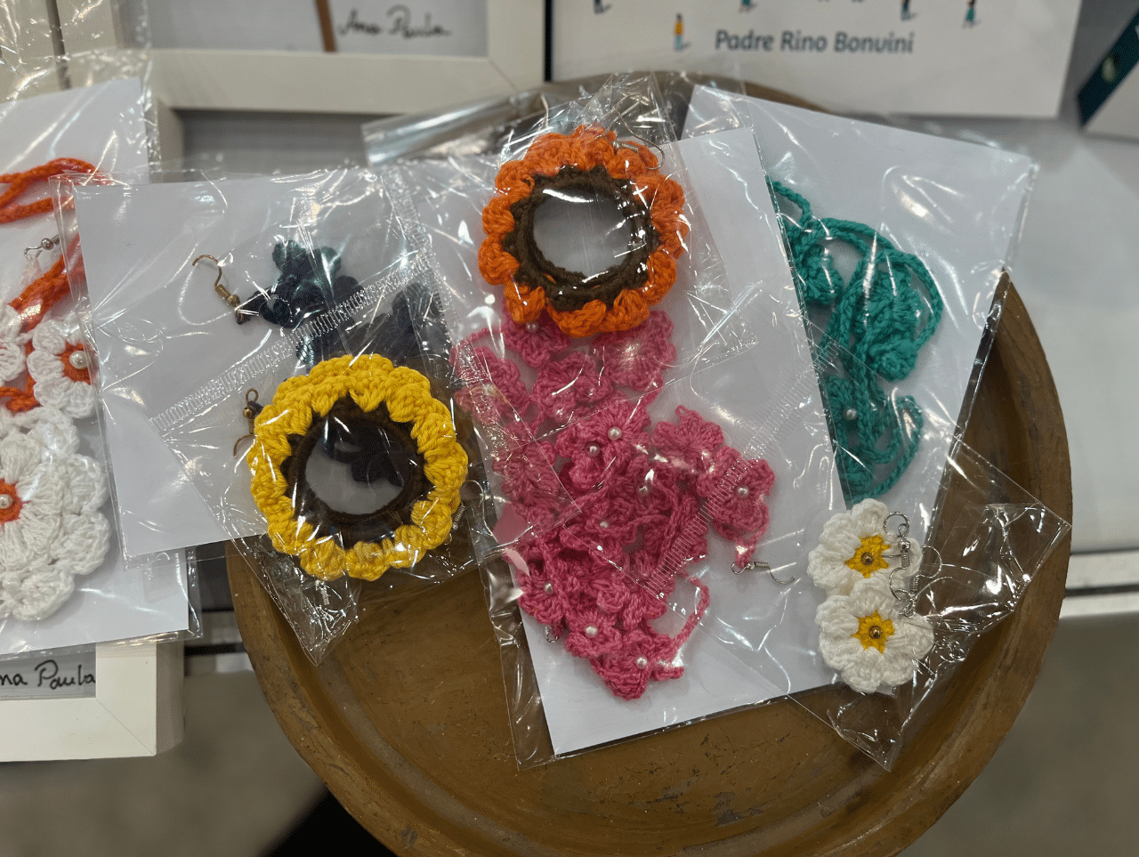Com um estande que refletiu a criatividade e a força transformadora das mulheres do Grande Bom Jardim, a Casa AME exibiu produtos como quadros, crochê, macramê, cartões orgânicos, pulseiras artesanais e amigurumis, produzidos por mulheres acolhidas pelo projeto. Entre os destaques, estão os Cartões Orgânicos, feitos com materiais orgânicos que já faleceram, como penas de aves, folhas secas e palhas de bananeira.