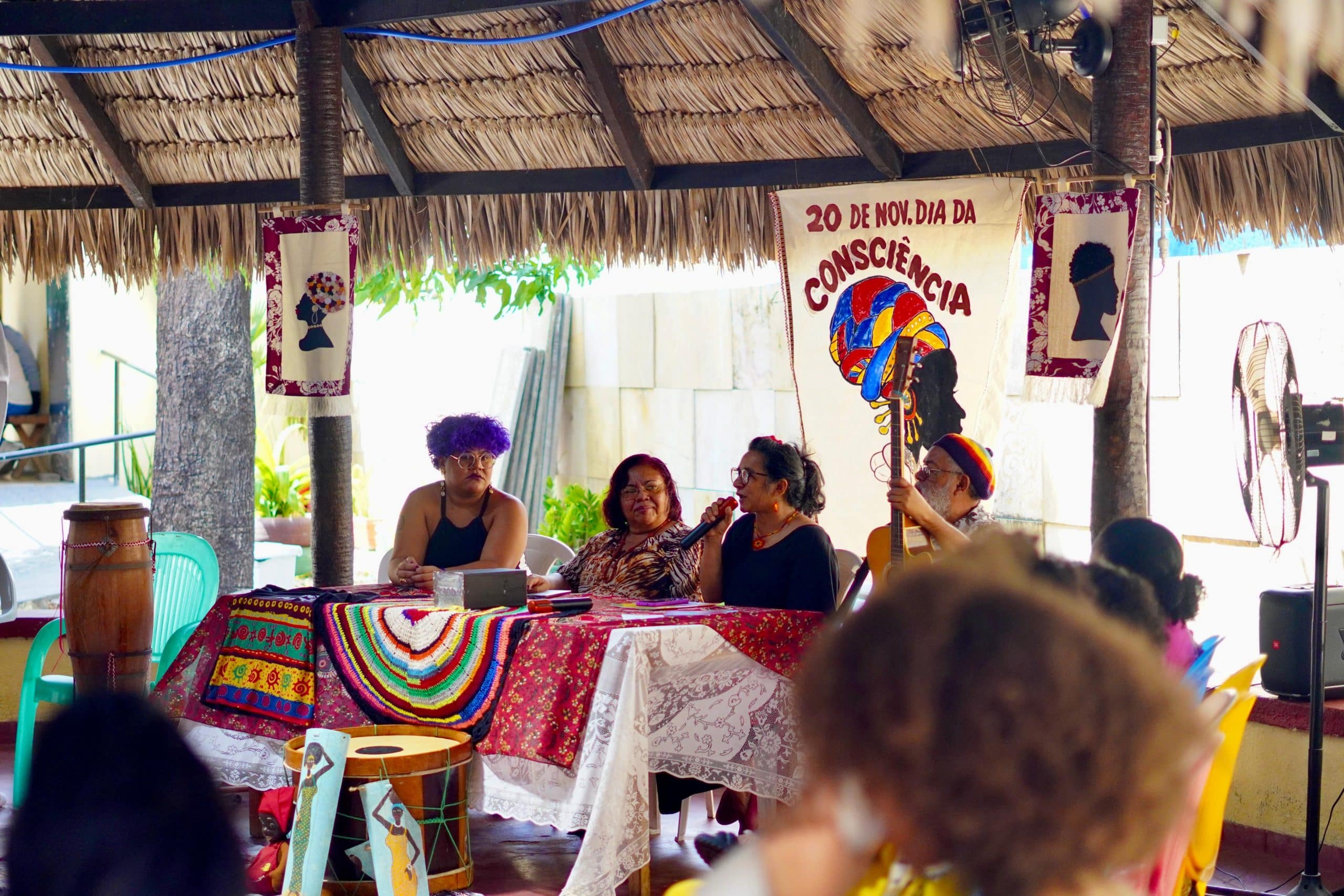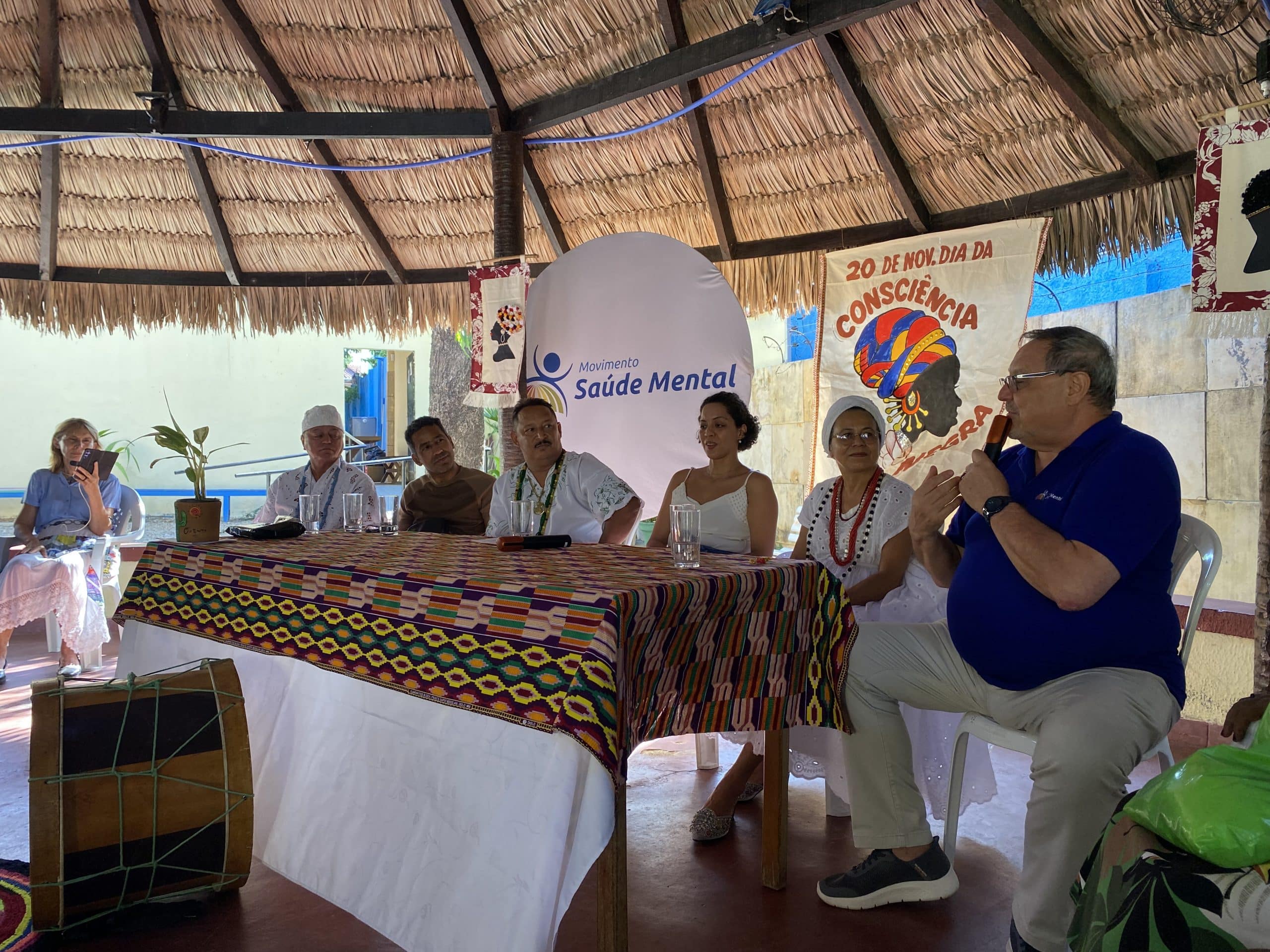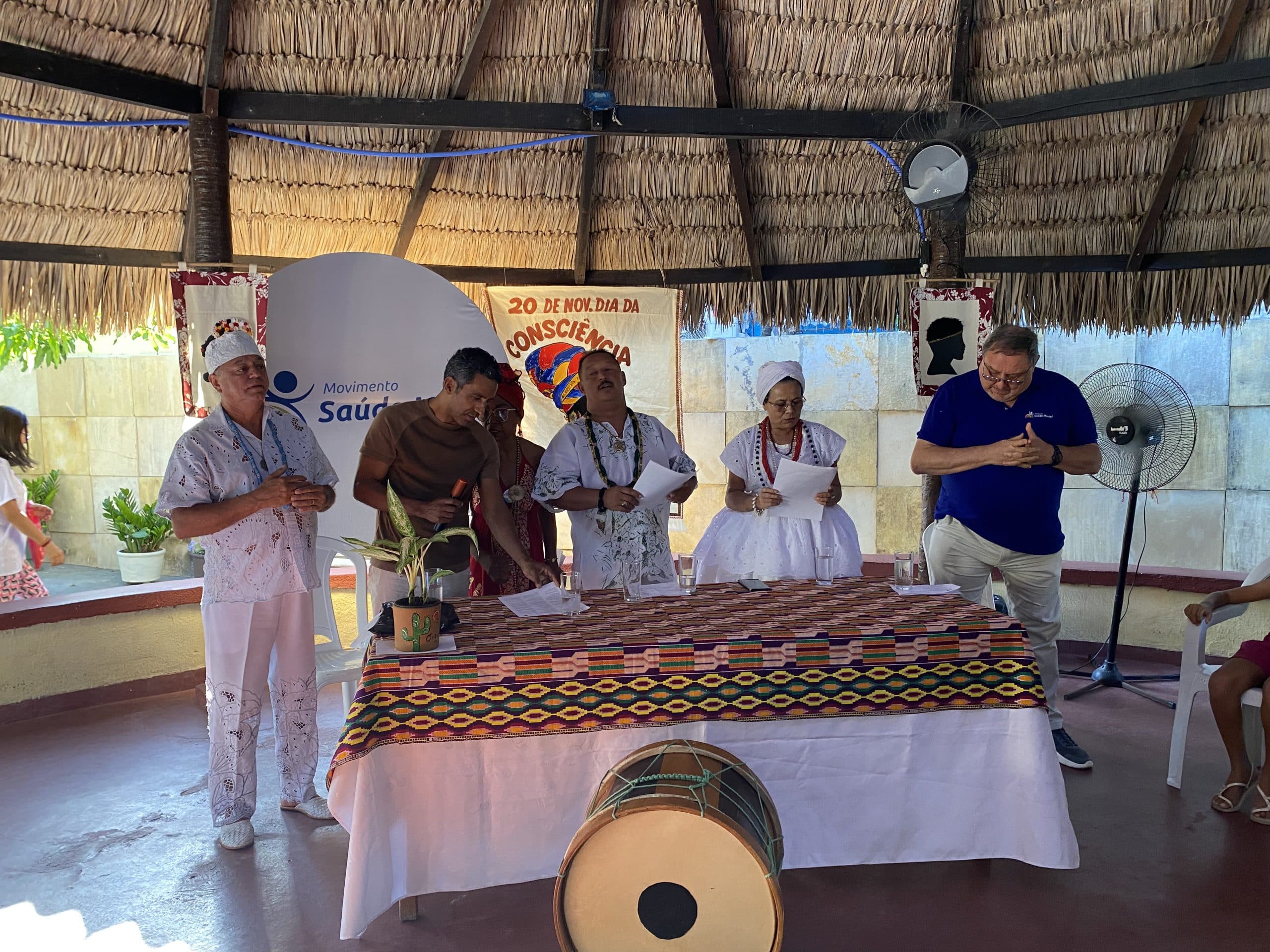 Nos dias 28 e 29 de novembro, o Movimento Saúde Mental realizou o “Movimento de Consciência Negra”, evento voltado para valorização da comunidade negra e cultura afro-brasileira, em alusão ao Dia da Consciência Negra. Se reuniram na Palhoça Comunitária líderes da umbanda e candomblé, pesquisadores e especialistas na cultura negra, artistas e a comunidade do Bom Jardim.