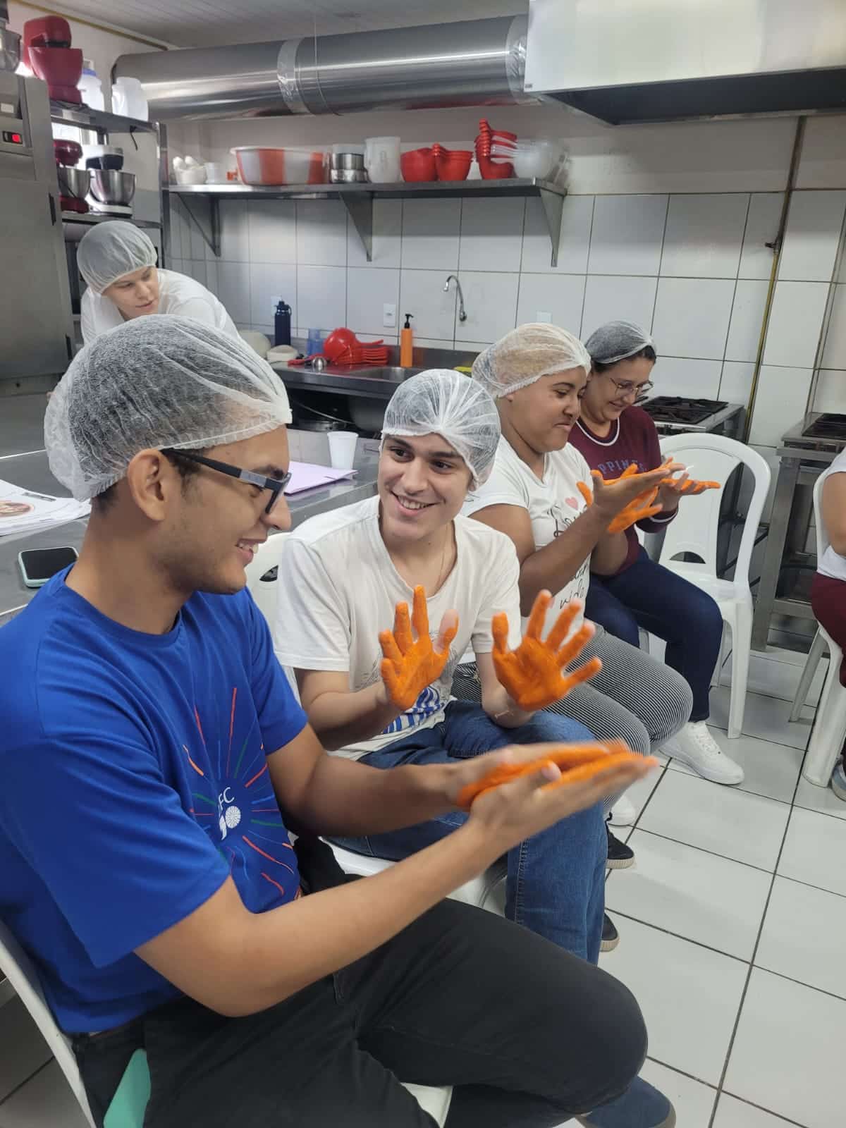 Como atividade prática, as turmas fizeram a limpeza dos alimentos, praticaram o corte correto a partir das aulas de segurança e manipulação de utensílios e prepararam uma salada de frutas. Ao final da aula, todos realizaram a degustação como parte do processo de análise sensorial proposto pelo curso.