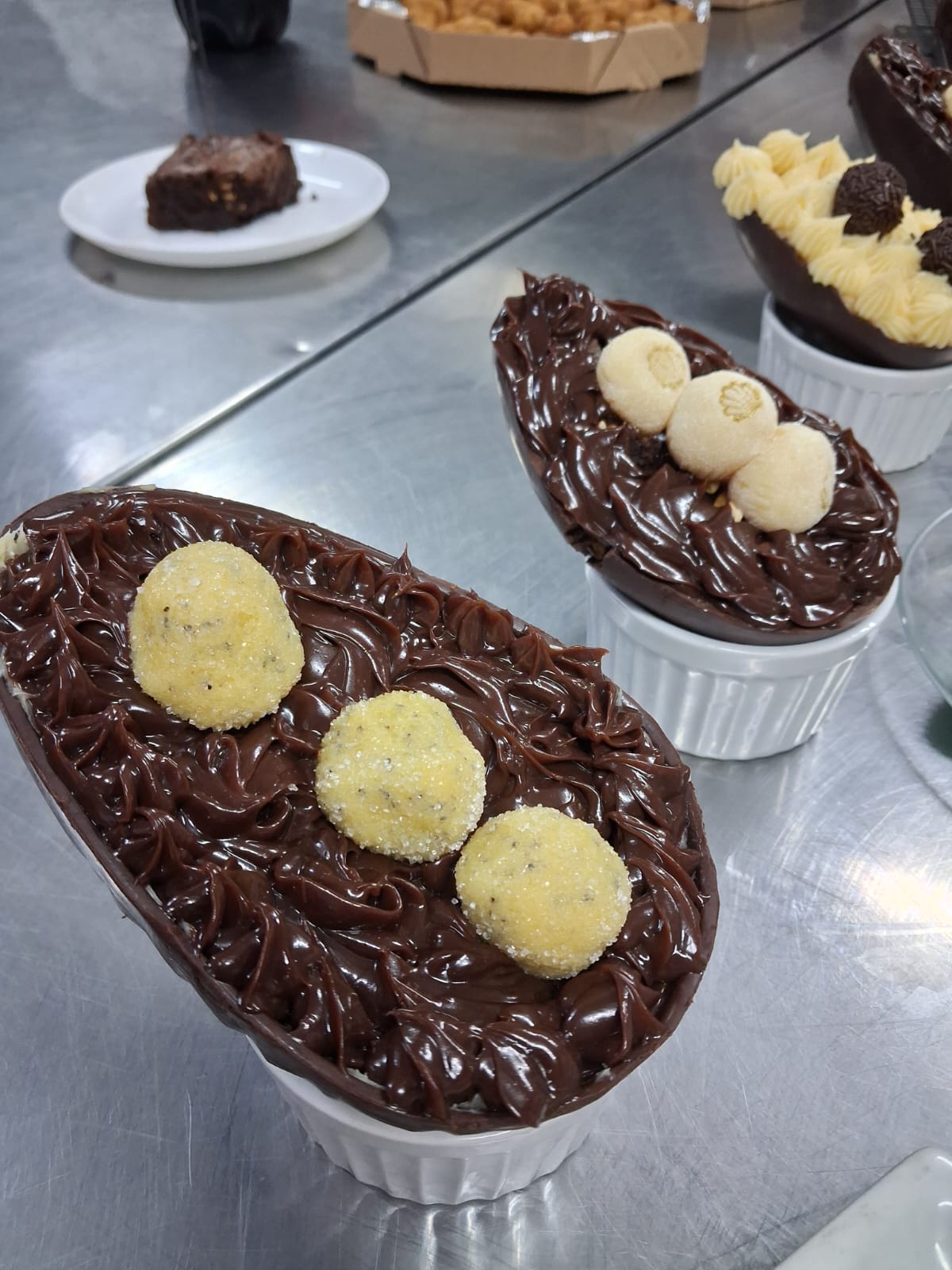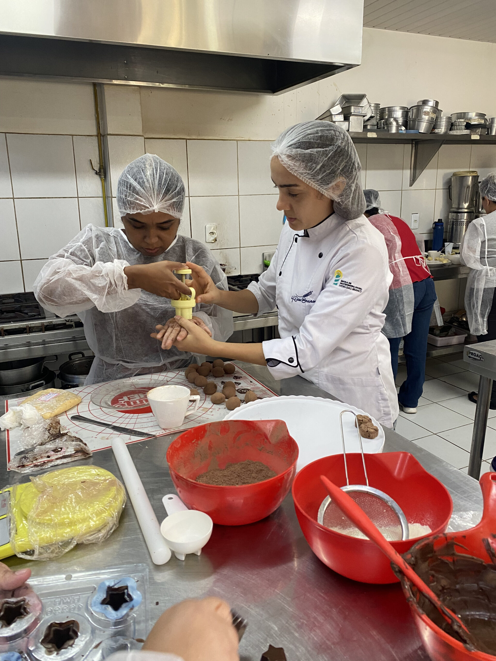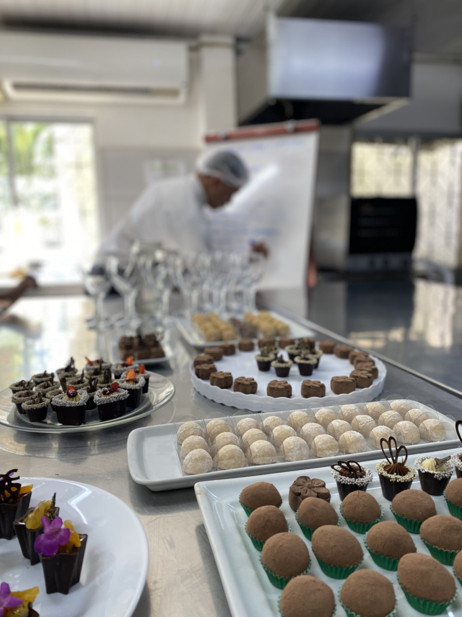 Nas demais formações gastronômicas, os/as alunos/as produziram receitas low carb, na aula de confeitaria saudável de Pâtisserie e Confeitaria. Na turma de Doces e Sobremesas Clássicas e Gourmet foi ensinado o preparo de brownies, trufas, bombons e ovos de páscoa.
