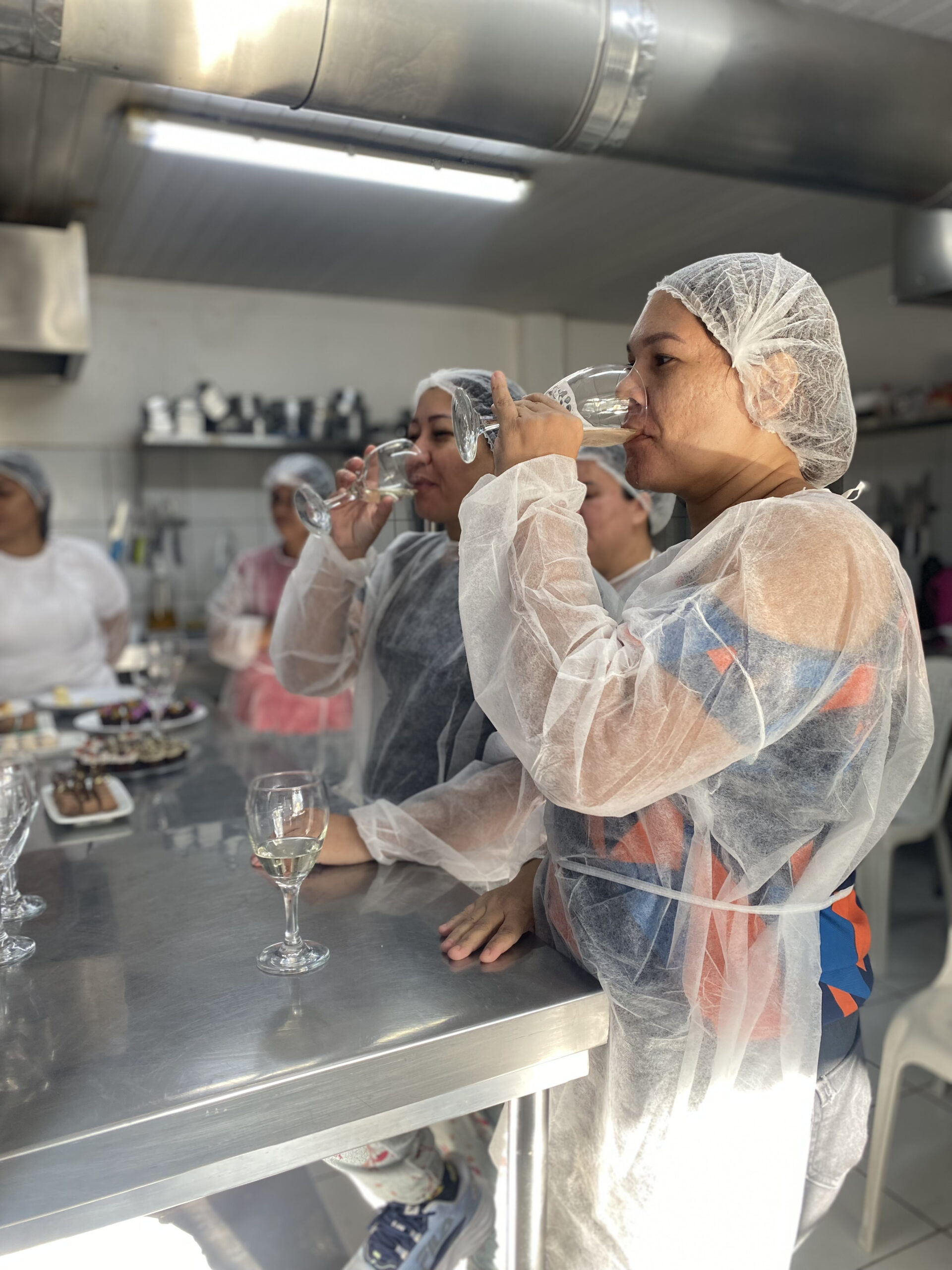 Entre os assuntos abordados, os/as participantes aprenderam sobre a abordagem teórica e prática sobre harmonização dos vinhos com sobremesas, incluindo a importância da estética e apresentação dos doces finos. Sob orientação de Denis, os/as alunos/as fizeram uma análise gustativa dos vinhos com os doces finalizados na aula. “Quando se fala de harmonização de vinhos e comida, pouco se pensa em sobremesas, no entanto essa arte combina com todas as etapas de um menu degustação. […] Então foram vistos a harmonização de sobremesas e vinhos e desenvolvimento na arte da degustação técnica de vinhos e a combinação com sobremesas diversas”, explica Julianna Almeida, professora da turma.