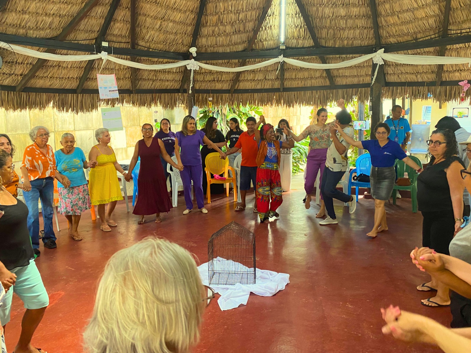 A Palhoça Comunitária do Movimento Saúde Mental (MSM) recebeu a comunidade do Bom Jardim e convidados/as para celebrar o Dia Nacional da Luta Antimanicomial com a semana “Em casa sim! Sem liberdade nunca mais!”, que ocorreu entre os dias 19 e 23. A programação acolheu os/as participantes em momentos de cuidado e terapia, exibição de filmes e documentários com a temática abordada e oficinas artísticas, com o intuito de falar sobre as mudanças no tratamento psiquiátrico, principalmente em relação às práticas integrativas, além de dialogar sobre a inclusão e o trabalho contínuo na conscientização de melhores condições para as pessoas em tratamento psiquiátrico.