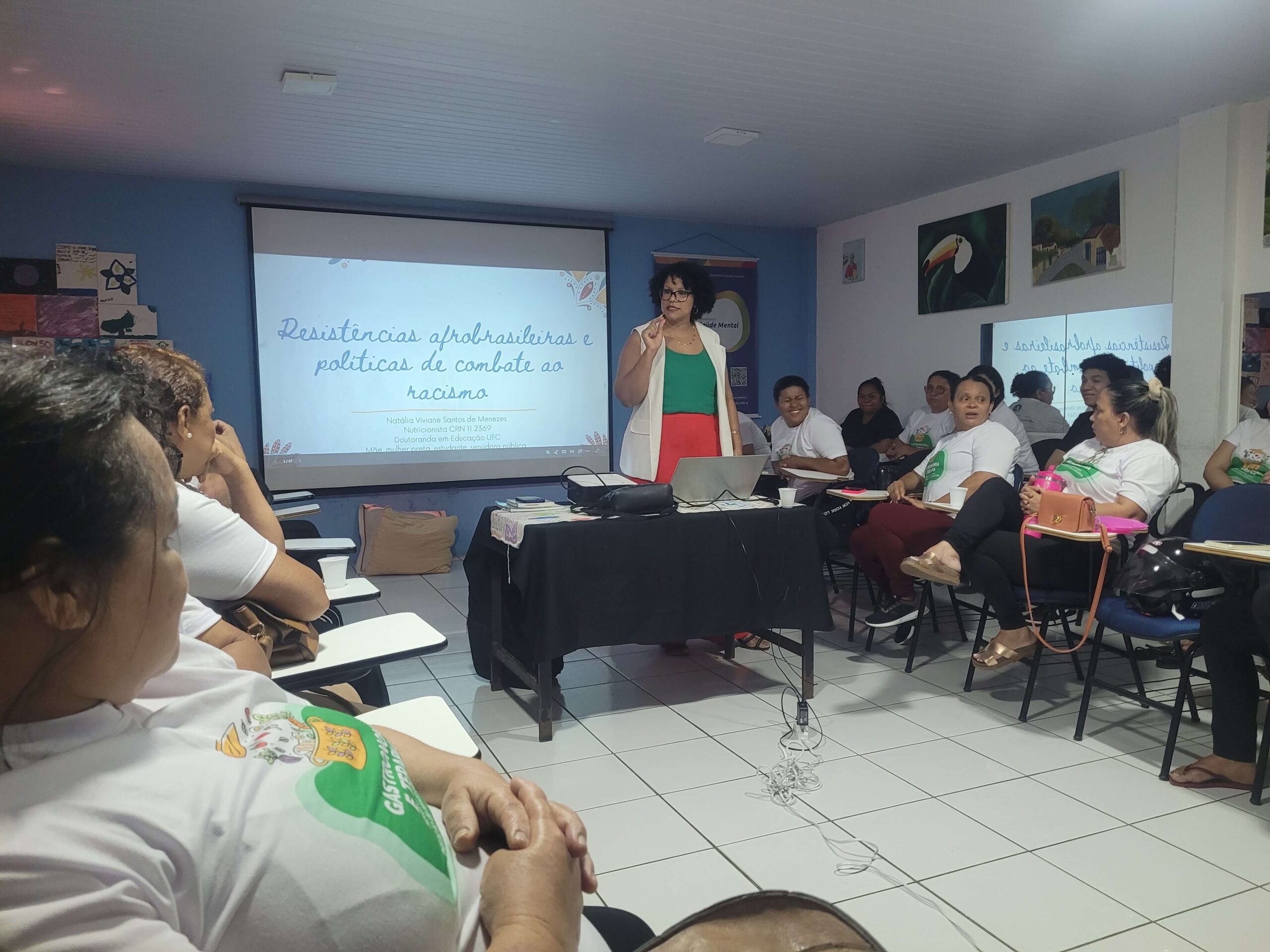 Para a aula de cidadania da semana, os/as alunos receberam a professora Natália Vivina para discutir sobre a questão racial no Brasil, abordando temáticas sobre desigualdades racial, racismo, resistências afro-brasileiras e combate ao racismo.