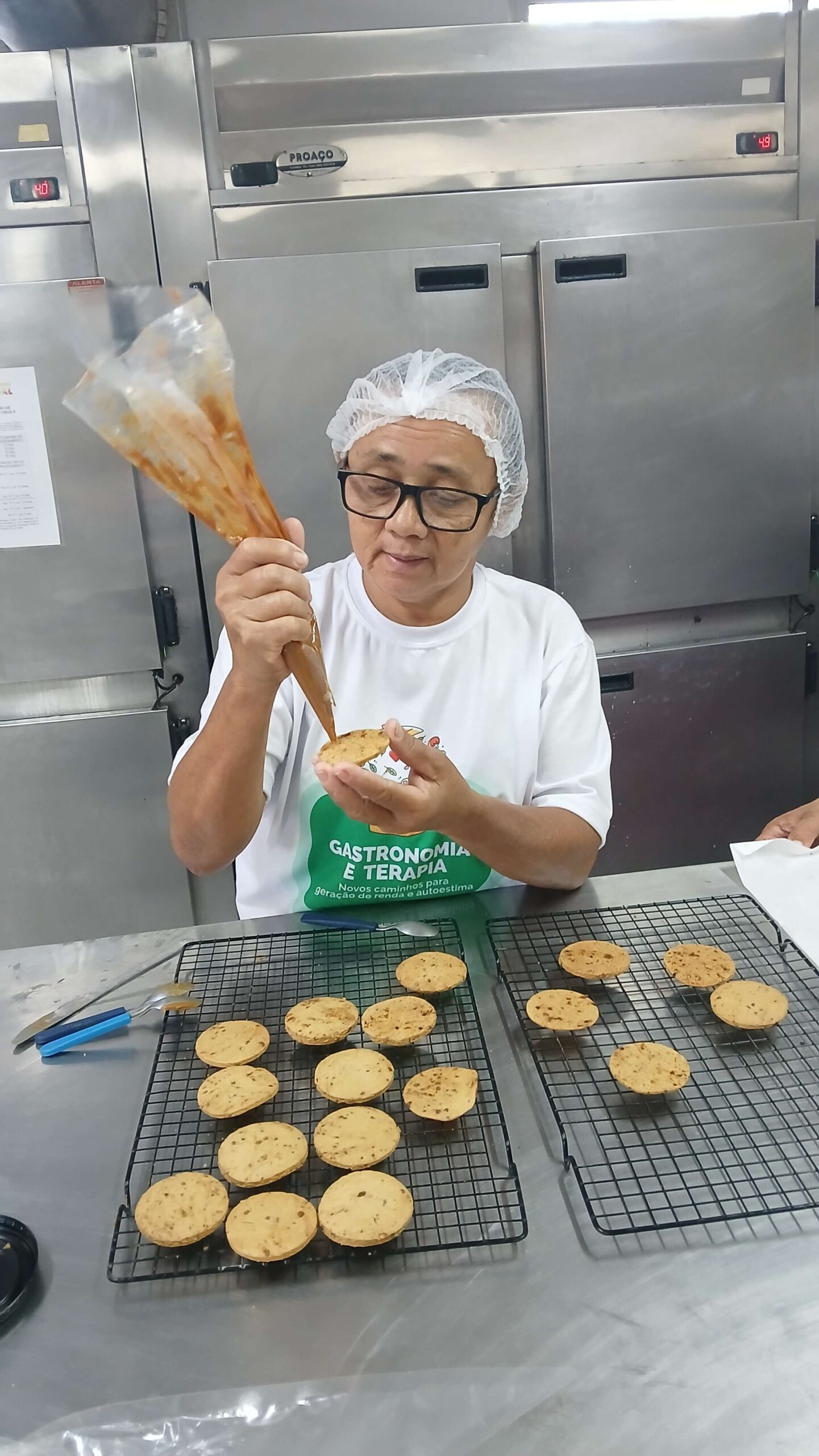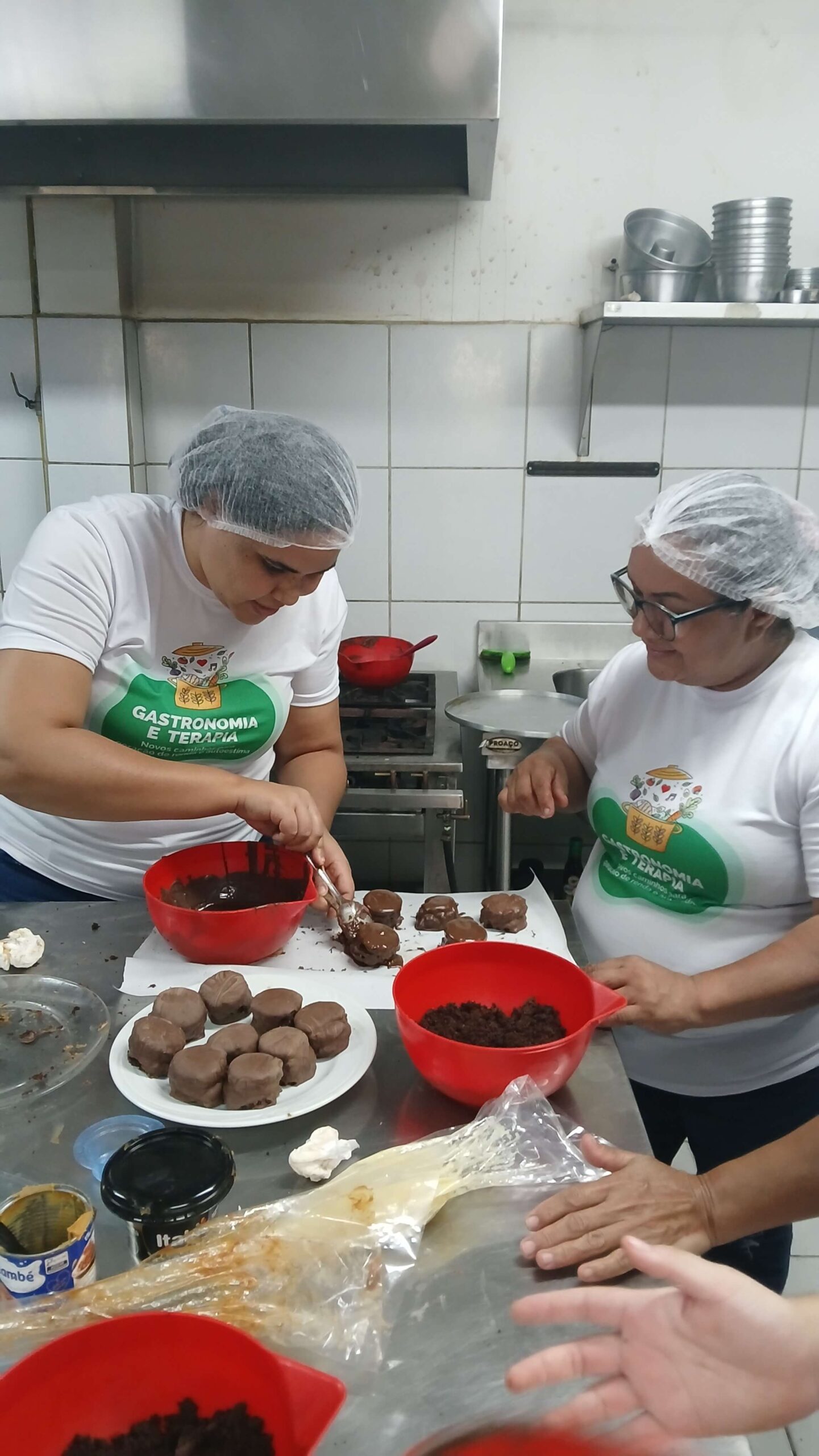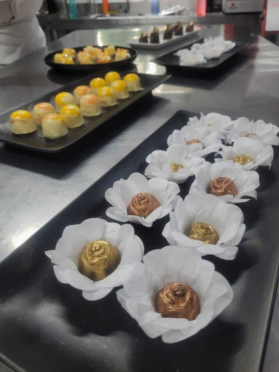 Nos dias 22, 23 e 25, as formações gastronômicas seguiram normalmente. A turma de Salgados Comerciais, do professor Joel Andrade, teve mais um módulo de massas cozidas, quando produziu uma variedade de salgados feitos com massa de legumes. No curso de Doces e Sobremesas para Festas, o professor Yan Alves ensinou aos participantes o preparo de pão de mel e alfajor. Em Chocolateria, a professora Lauana abordou a coloração do chocolate.