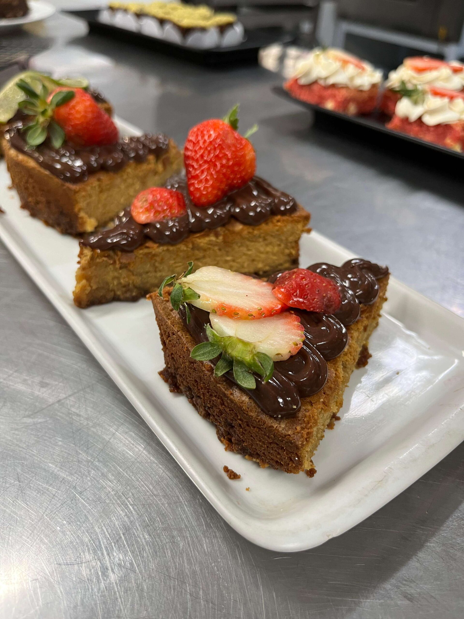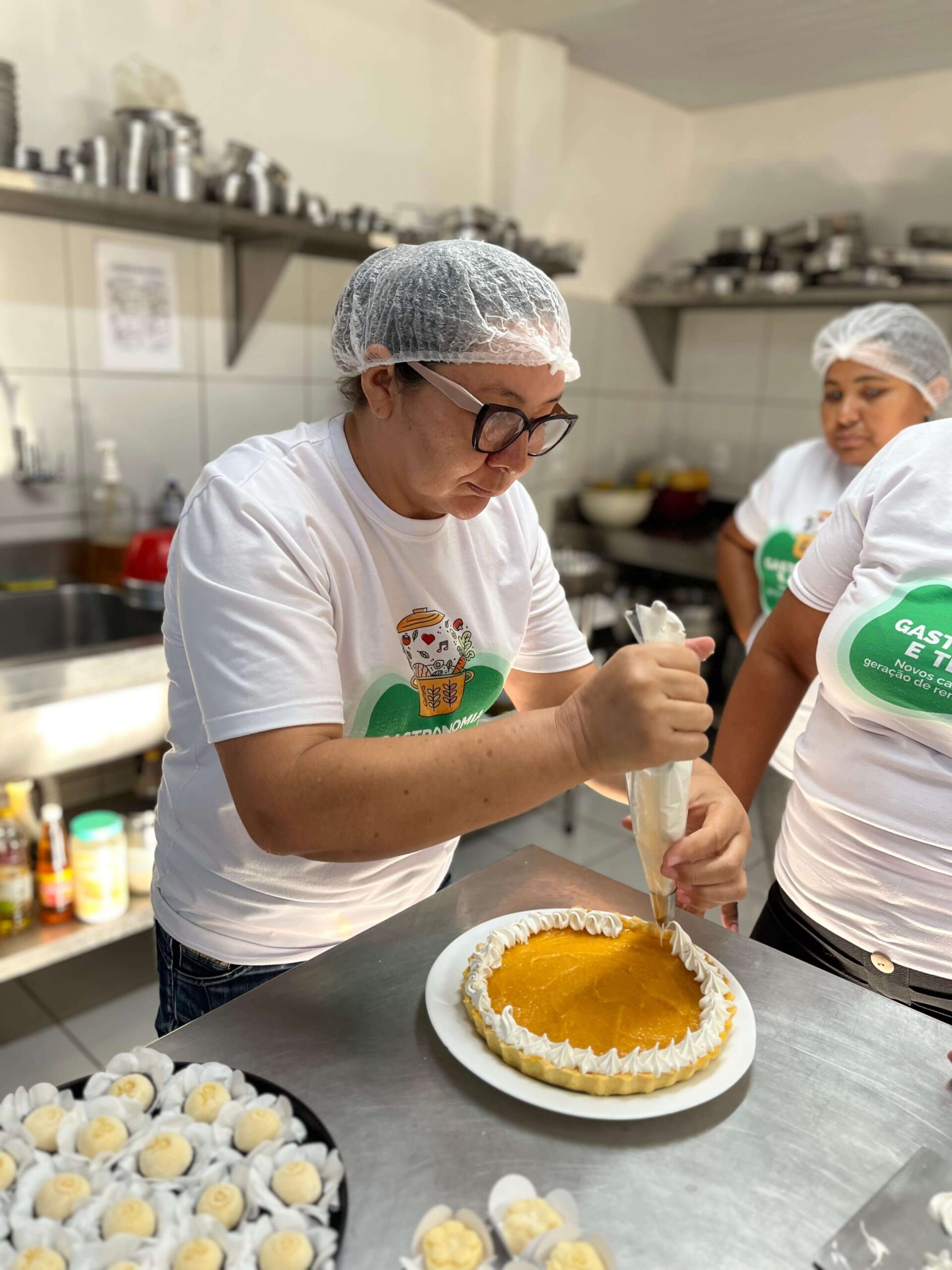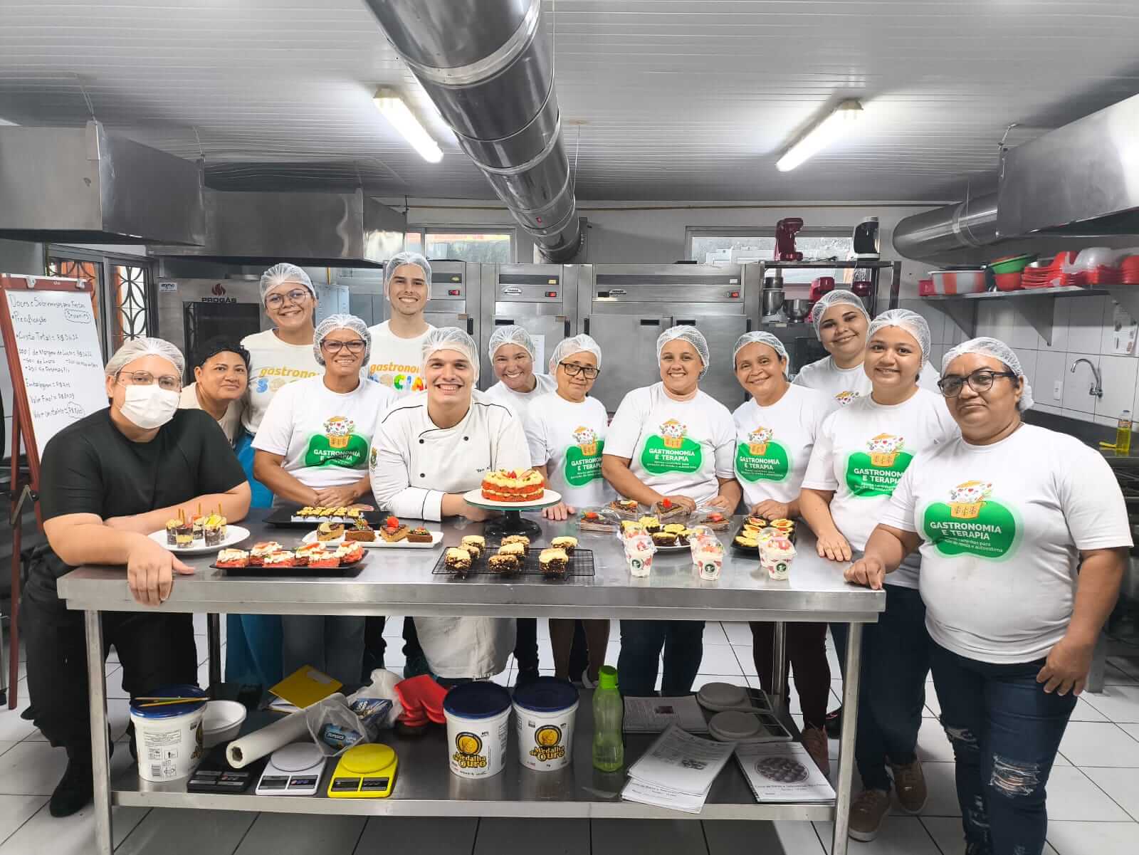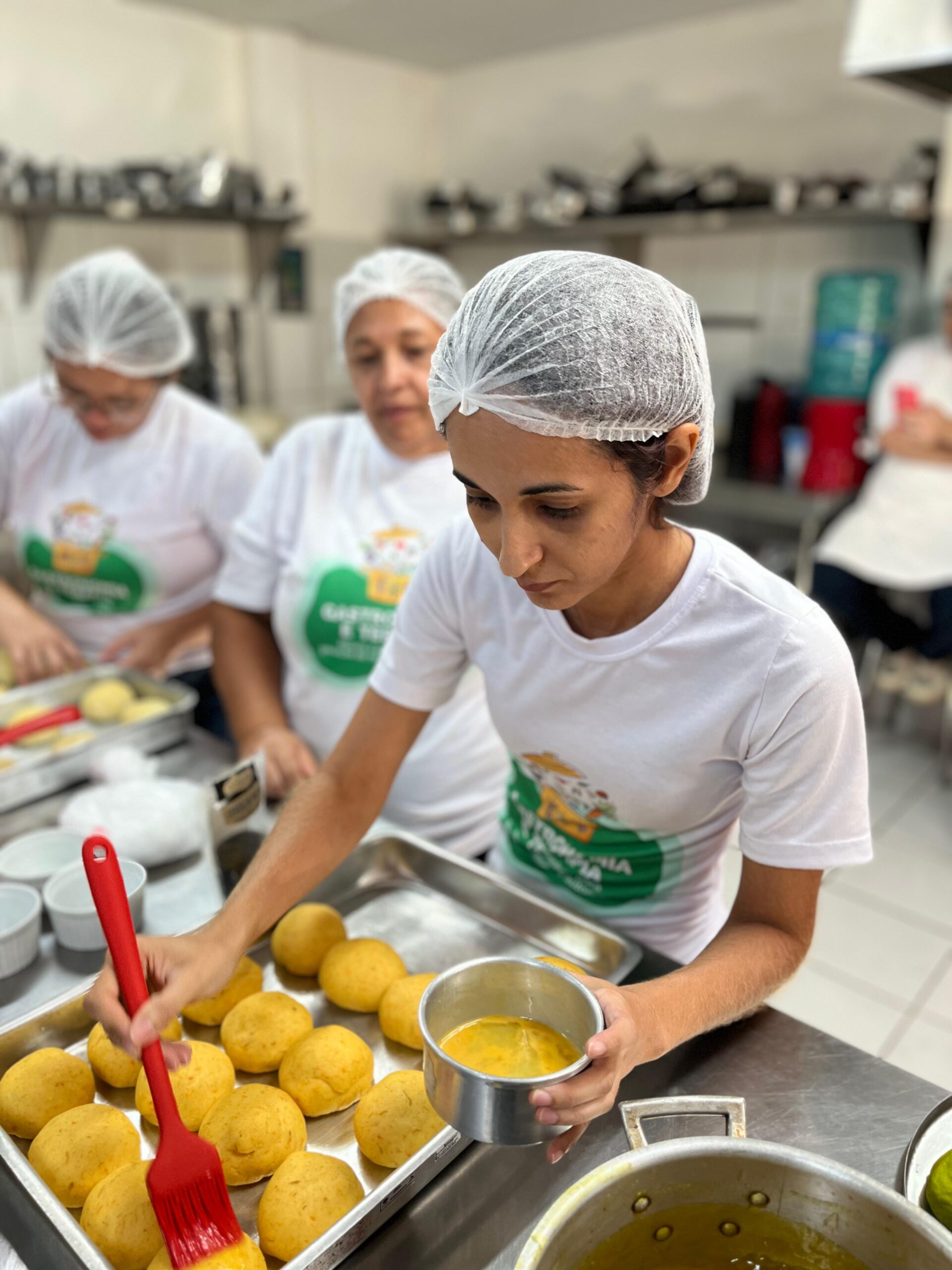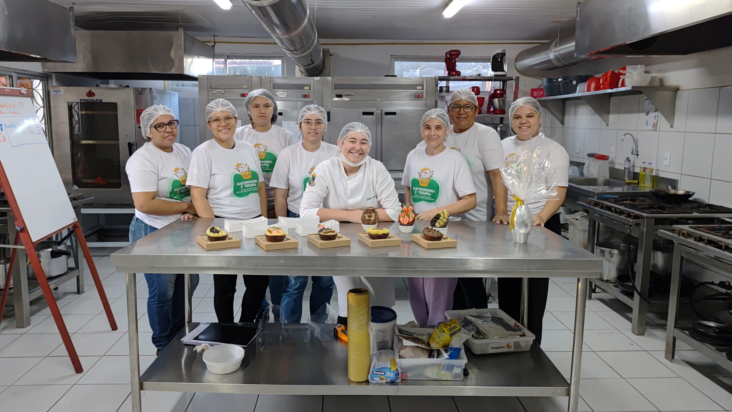 Nos dias 19, 20, e 22, as demais formações gastronômicas da EGA seguiram normalmente. Em Salgados Comerciais, o professor Joel Andrade deu o segundo módulo sobre pães com base em legumes, quando os/as alunos/as produziram pão de batata inglesa, pão de batata doce, pão de cenoura e pão de macaxeira, além de geleia de frutas. A aula da turma de Chocolateria da semana, ministrada pela professora Lauana Fontenele, contou com a produção de ovos de chocolate e suas variações. Já em Doces e Sobremesas para Festas, a turma aprendeu com o professor Yan Alves o preparo de brownies.