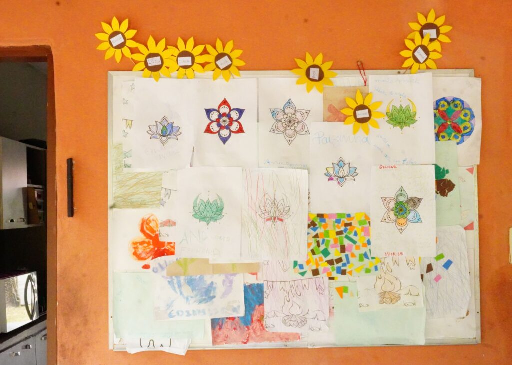 Sobre a participação nas atividades da Palhoça, Ana Paula conta que eles gostam muito do Circuito de Cuidados e do Palco Aberto nas sextas-feiras, mas também participam de alguns grupos de terapia, além da hortaterapia realizada na Horta Comunitária Maria Abreu. Dentro da residência, os/as terapeutas promovem atividades de meditação, aromaterapia, relaxamento e de arteterapia que estimulam a criatividade, como desenhos e pinturas.